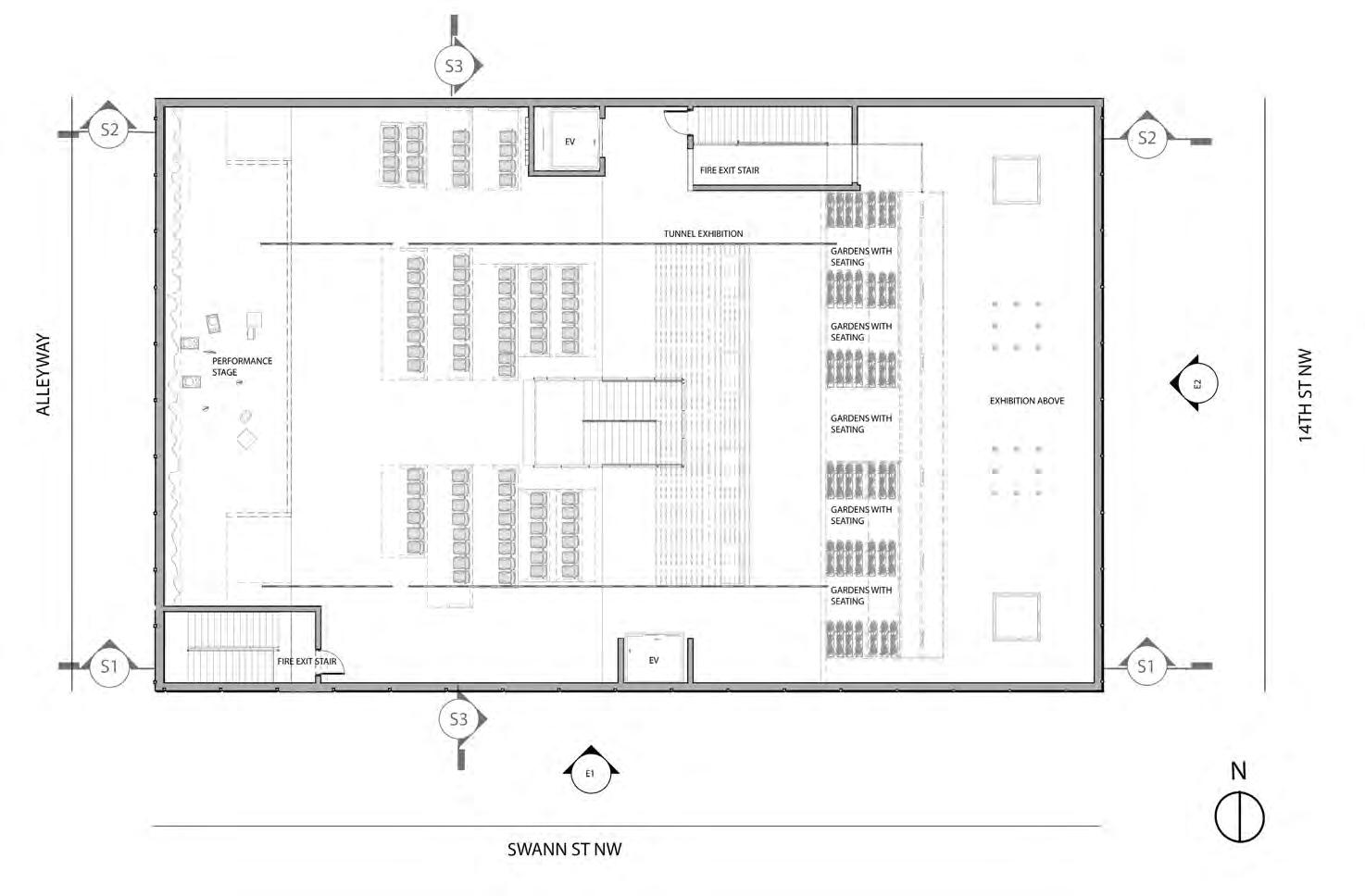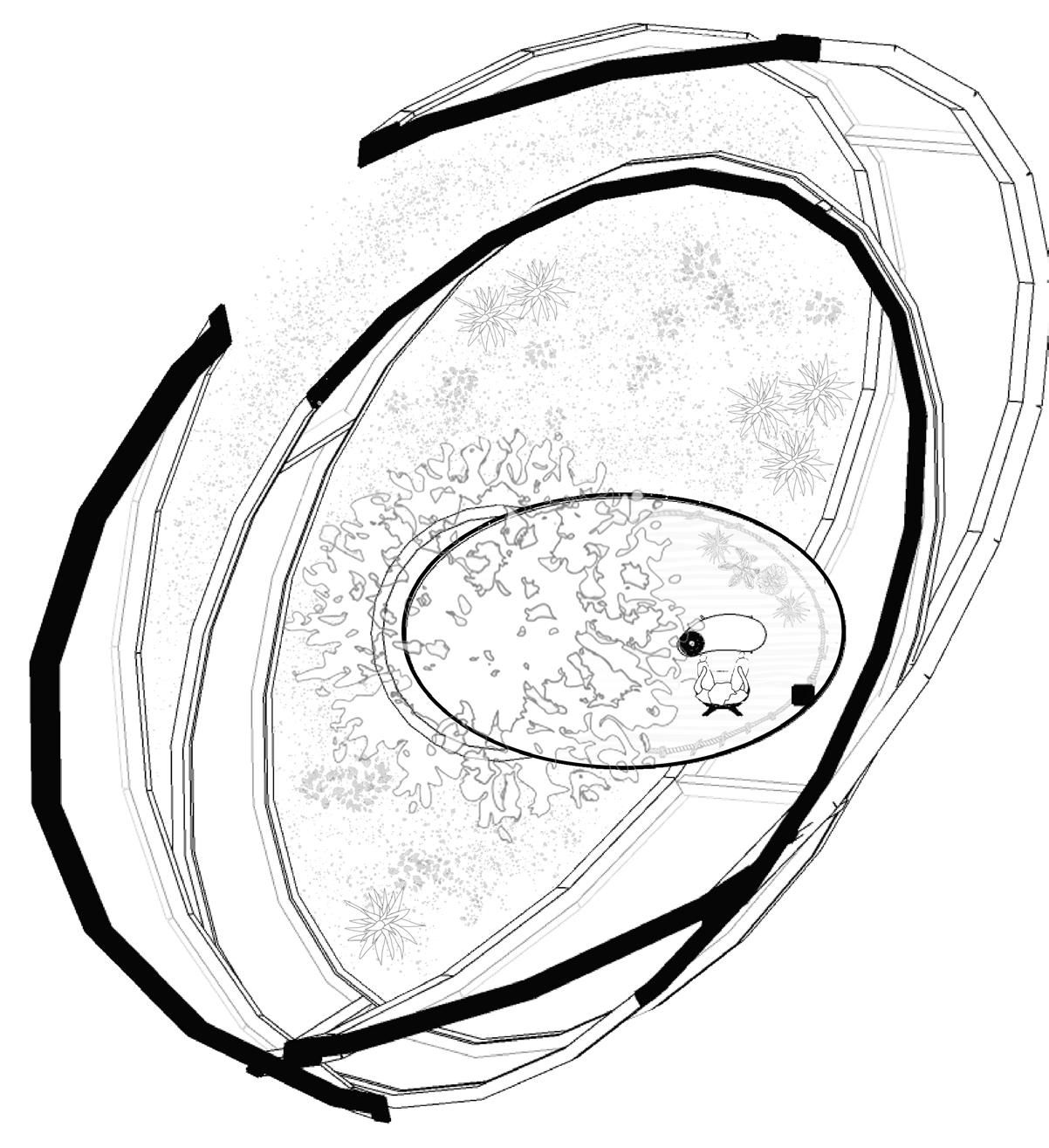 1st floor : 1.exploratory work space 2. gardens that allow for wildlife to inhabit