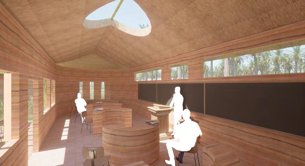 The symbolic meaning of trees are growth, calmness, and interconnectedness. Our design exhibits these qualities by unifying the community through public gardens and open edifices, adequate learning spaces for the appropriate age groups, as well as sheltered pathways that mimic branches of a tree for interrelatedness and flow. The heart of a tree begins with the trunk. To emphasize this the community hub stands in the center with the Wawa Tree rising above the site, a cultural significance to the Ghanaian people in terms of materials and symbolism.