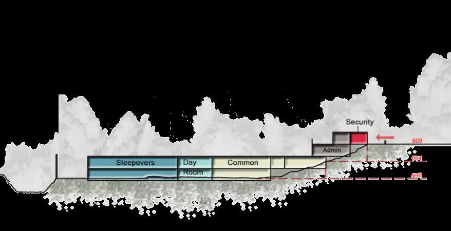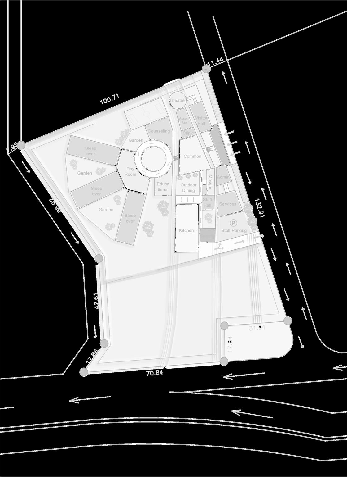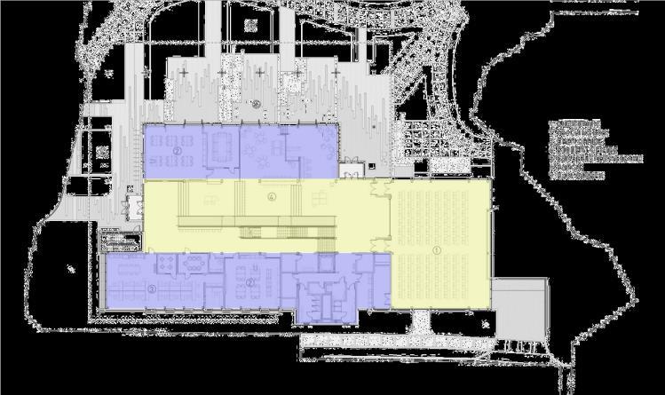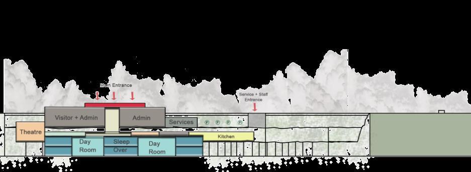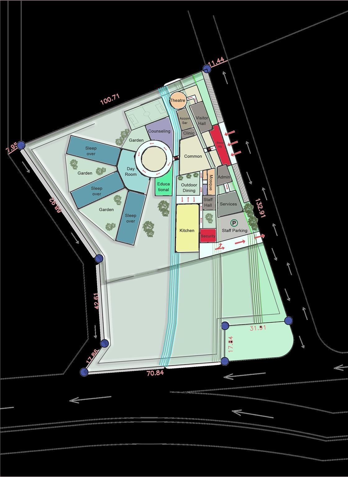 Based on the previous bubble diagram the site was divided into 3 main zones that are linked by the user groups as well as security needs;