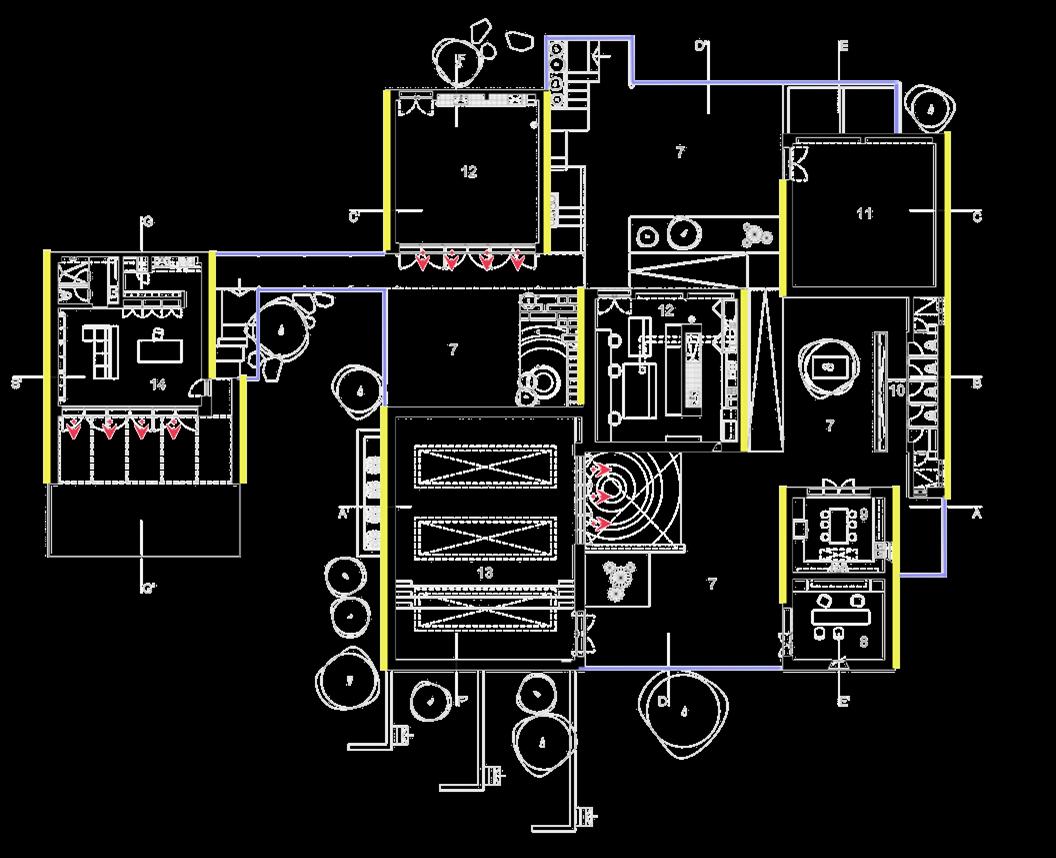 The main unit center within the building, shows that common corridor, disturbed nearly to all units, while the administrative is separated and the main relationship is with the public entry,