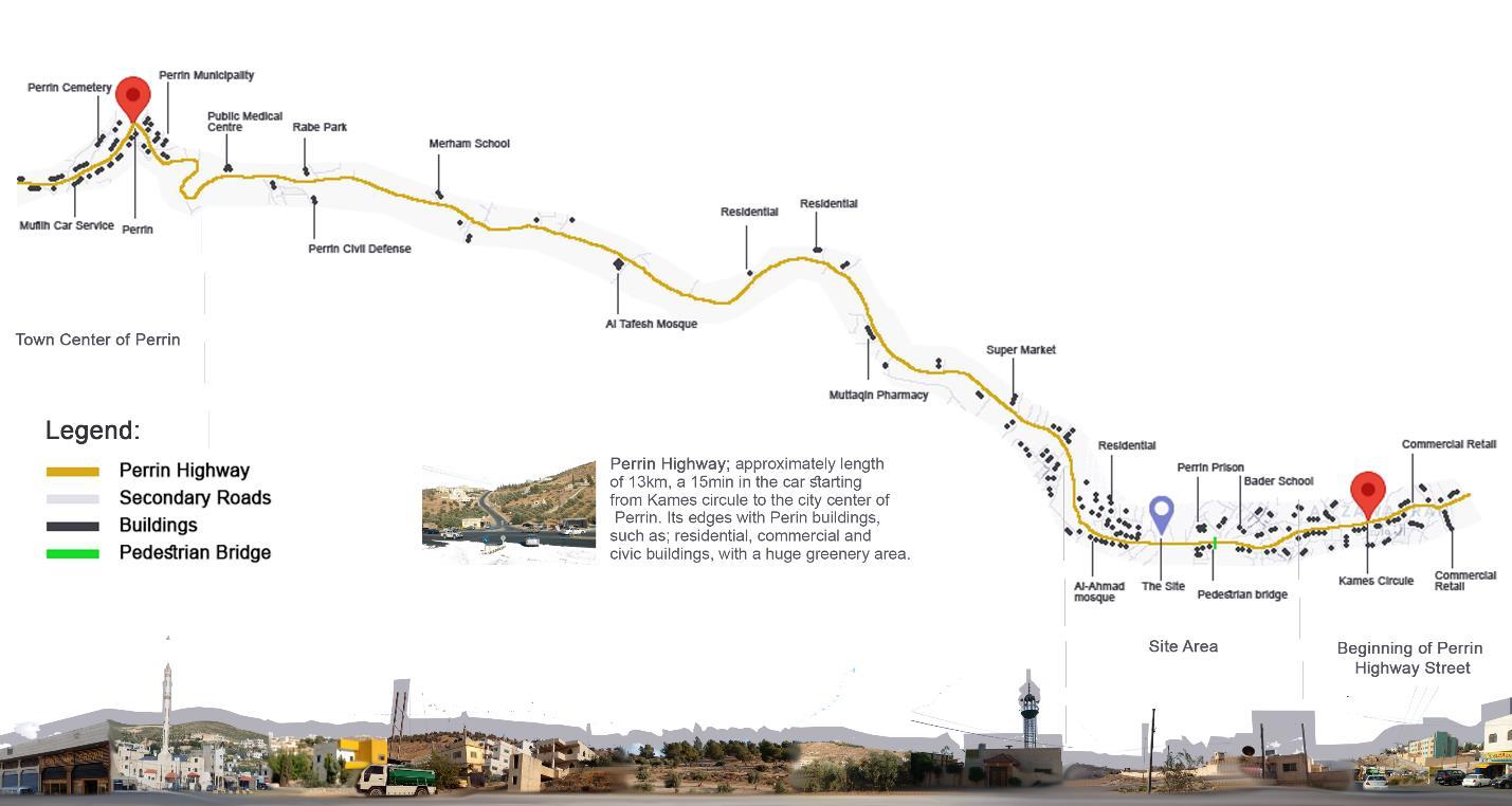 The site has a direct connection with the town, as it’s directly on Perrin highway, that starts from Kames Circle to Perrin town center. Going through many different building characteristic, and green area in the middle.