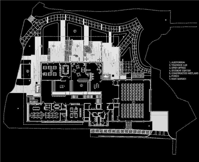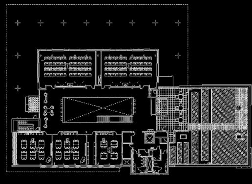 The building plan shows the relation of different spaces. The building is separated into facilities; education, recreation. and housing unit which are from the other buildings.