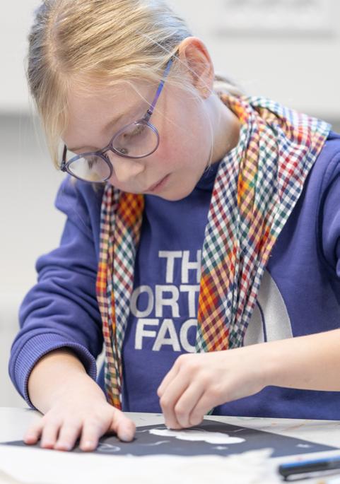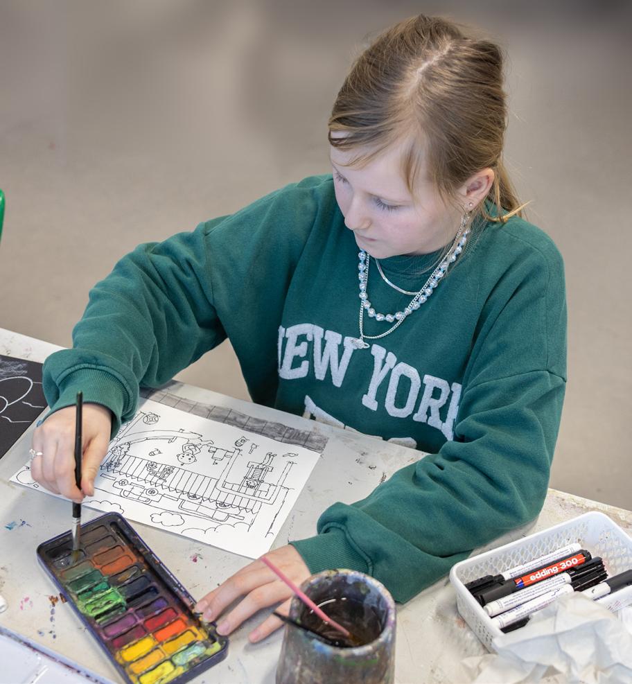 ”Jeg synes det er fedt at gå til billedkunst, fordi man lærer alt muligt nyt, og man kan få mange venner. Jeg nyder, at vi kan snakke sammen, imens vi er kreative. Det er rigtig sjovt og spændende at afprøve nye metoder, og det giver mig meget inspiration og lyst til at være kreativ.”