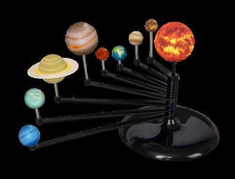HJ-1895 Assemble and paint your own planetarium. Includes 8 snap together planets, sun, and stand that allows the orbits of the solar system.