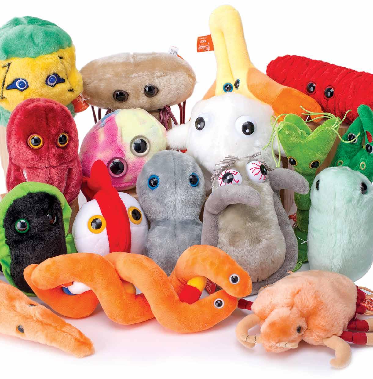 Giant Microbes are adorable plush toys with an educational twist. With a range including human cells, like Platelets, Nerves, and Muscles, as well as bacteria and viruses like the Common Cold, Chicken Pox, Mad Cow, and Ebola, these are some diseases you will not mind catching!