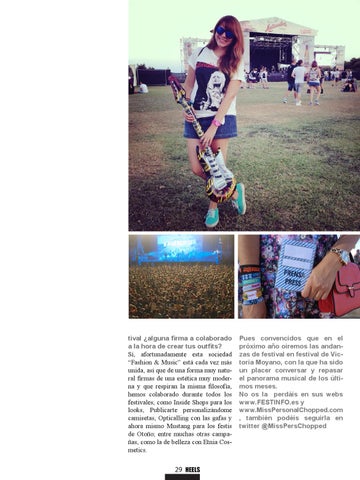 tival ¿alguna firma a colaborado a la hora de crear tus outfits? Sí, afortunadamente esta sociedad “Fashion & Music” está cada vez más unida, así que de una forma muy natural firmas de una estética muy moderna y que respiran la misma filosofía, hemos colaborado durante todos los festivales, como Inside Shops para los looks, Publicarte personalizándome camisetas, Opticalling con las gafas y ahora mismo Mustang para los festis de Otoño; entre muchas otras campañas, como la de belleza con Etnia Cosmetics.