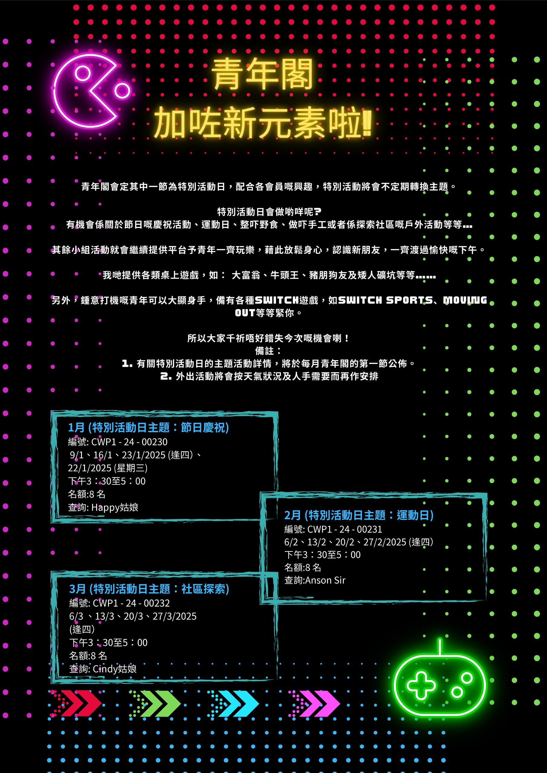 活動費用者,請預早通知活動負責職員,否則亦當作放棄參與活動論,並會影響下一 期參與活動的機會;