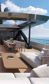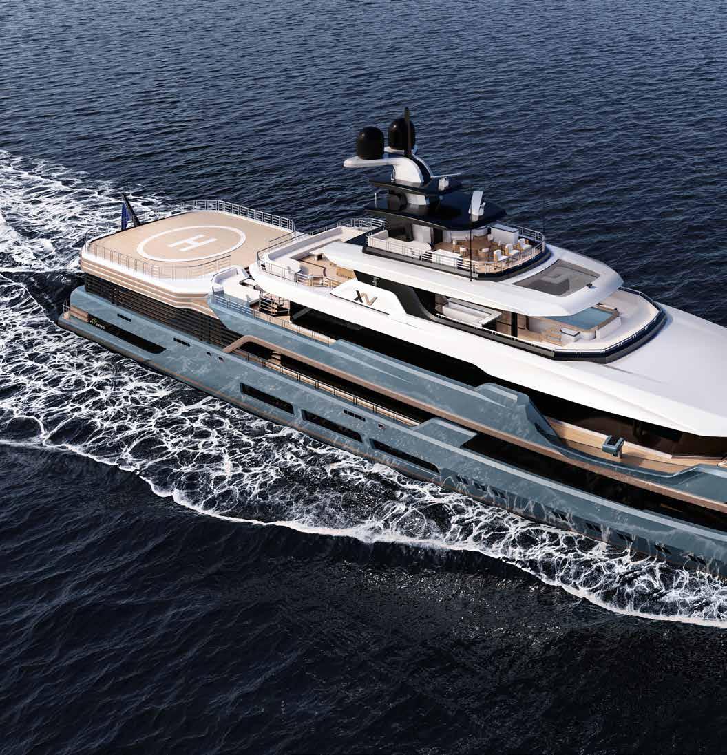 Aimed at adventurous yacht owners, the 67-metre hybrid powered yacht has been designed to offer high-latitude cruising without compromising on luxury at sea. The crossover concept is 10 metres longer than her predecessor and is packed with amenities including a fully-certified helipad, threedeck master cabin with a private crow’s nest and a sundeck pool.