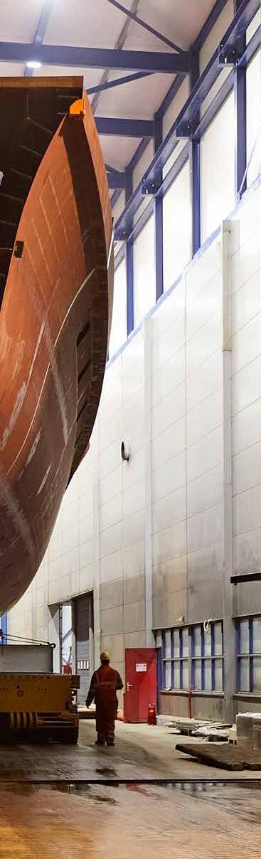 The shipyard today is almost unrecognisable, following a major expansion in 2016. The yard now features a 85-metre dry dock, equipped with advanced features to create the best working environment possible. A further recent development has also seen 80% of its roofs covered in solar panels, that now produce 60% of the shipyard’s power needs.