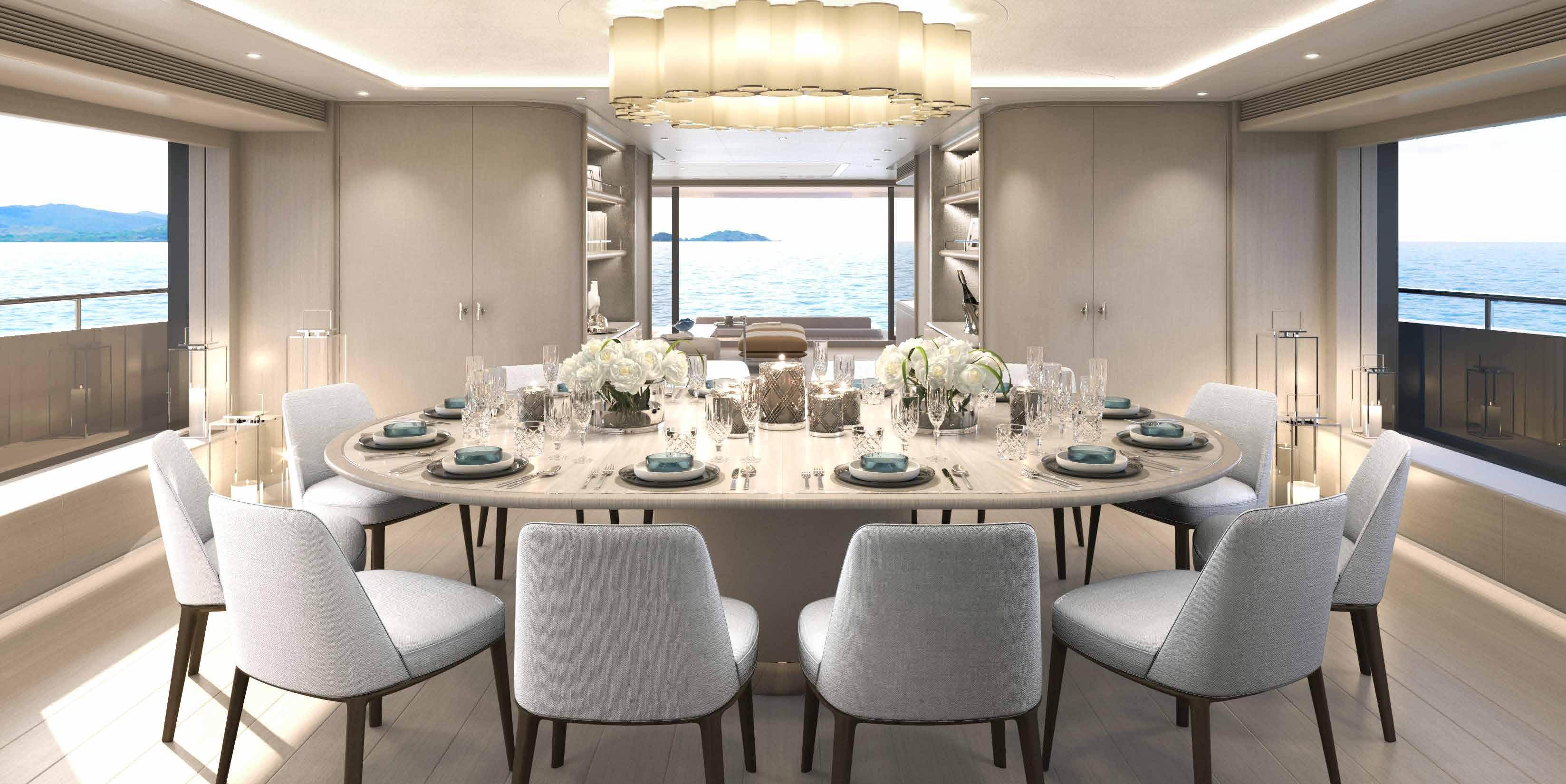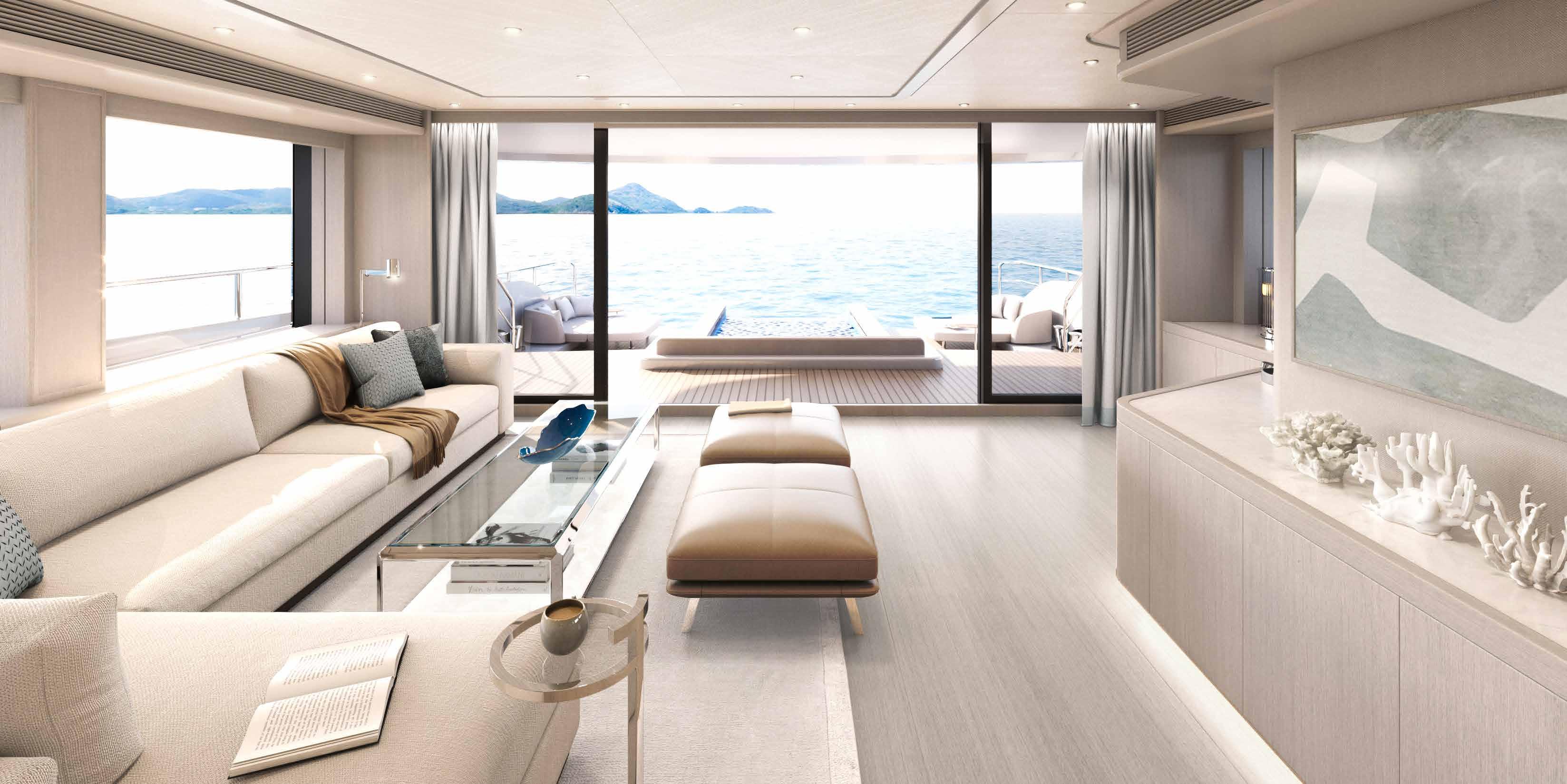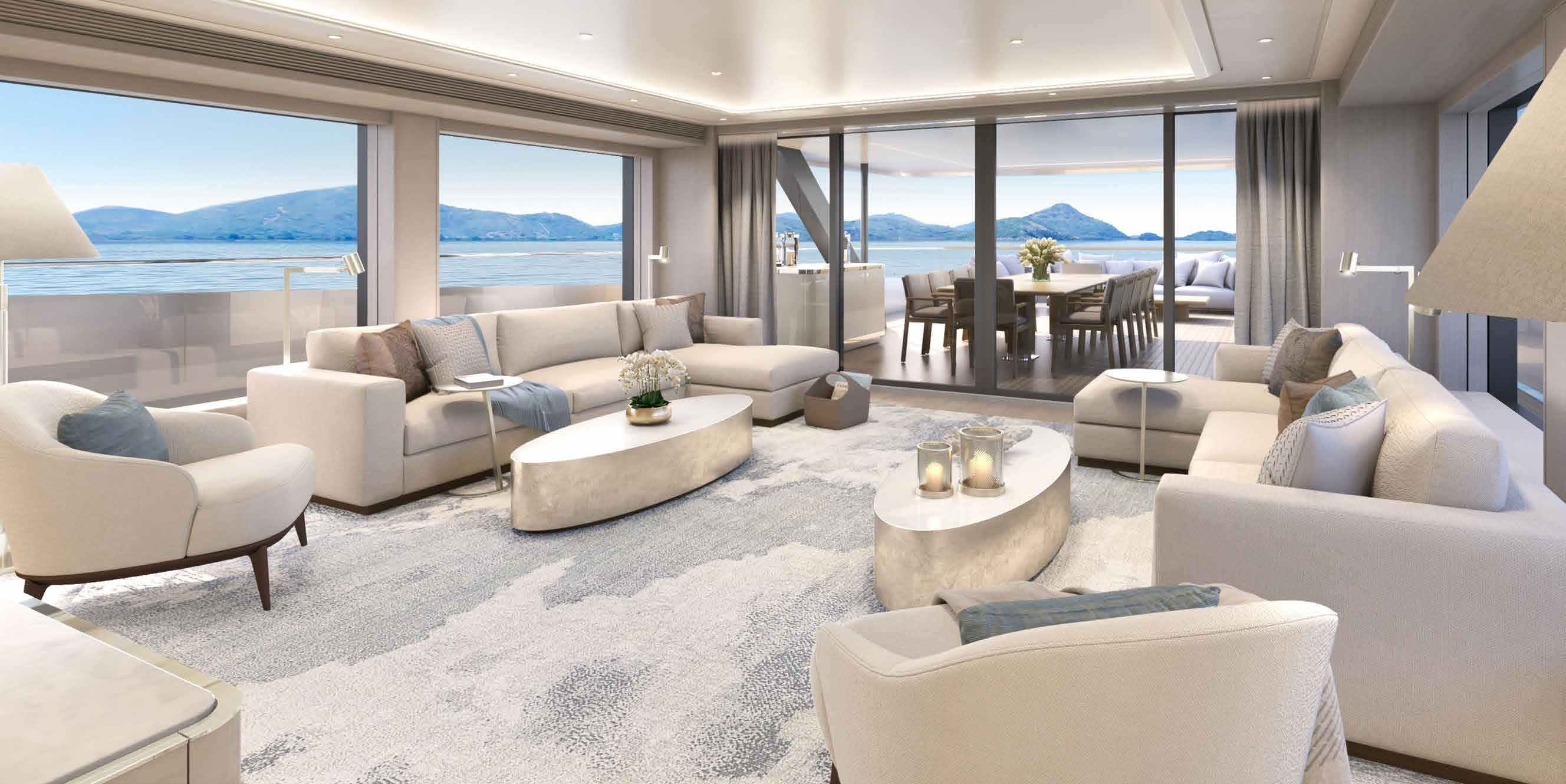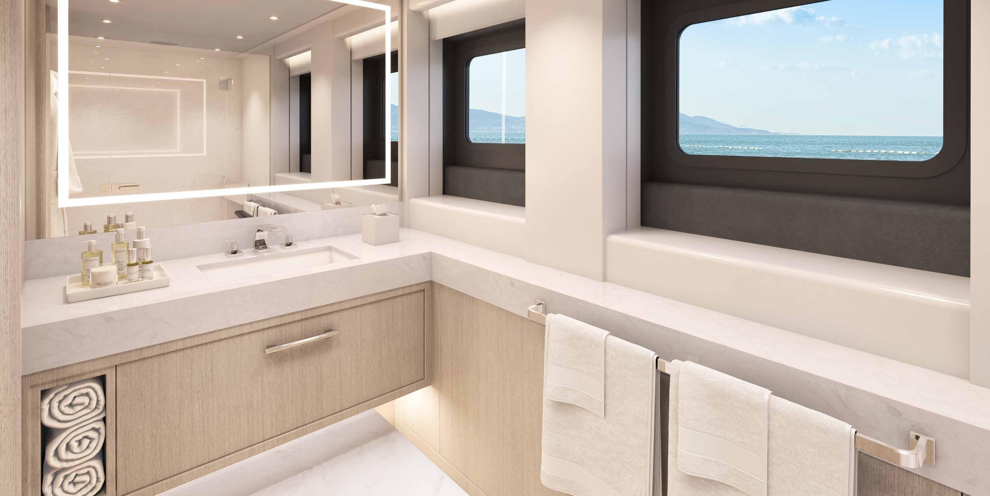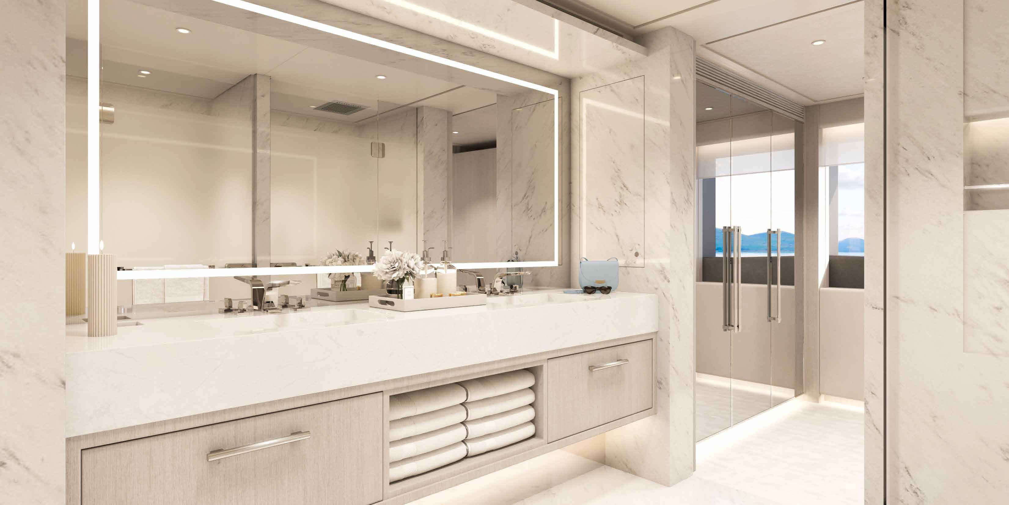 Suites Full-beam owner’s stateroom, one full-beam VIP suite, four double guest suites