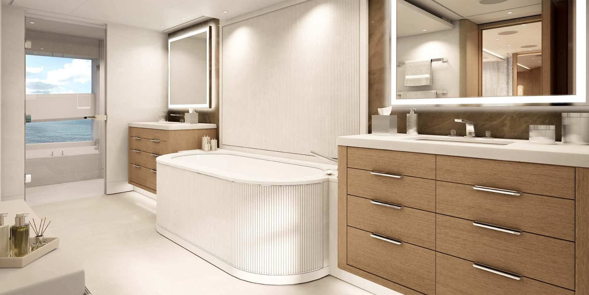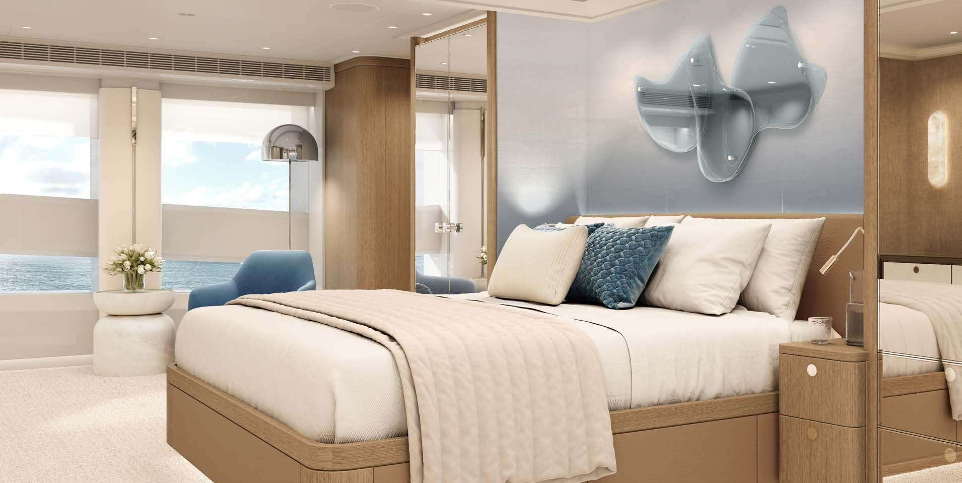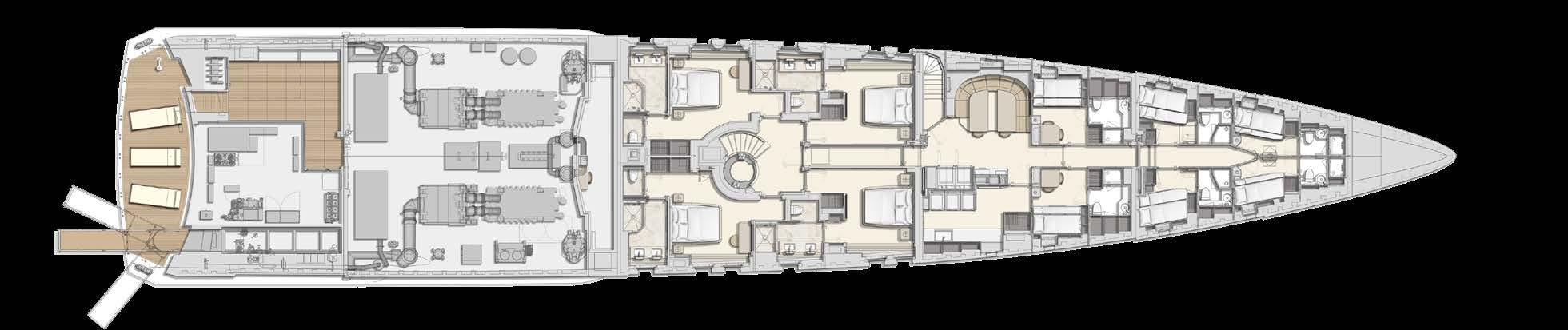 Full-beam owner’s stateroom , VIP suite, four double guest suites