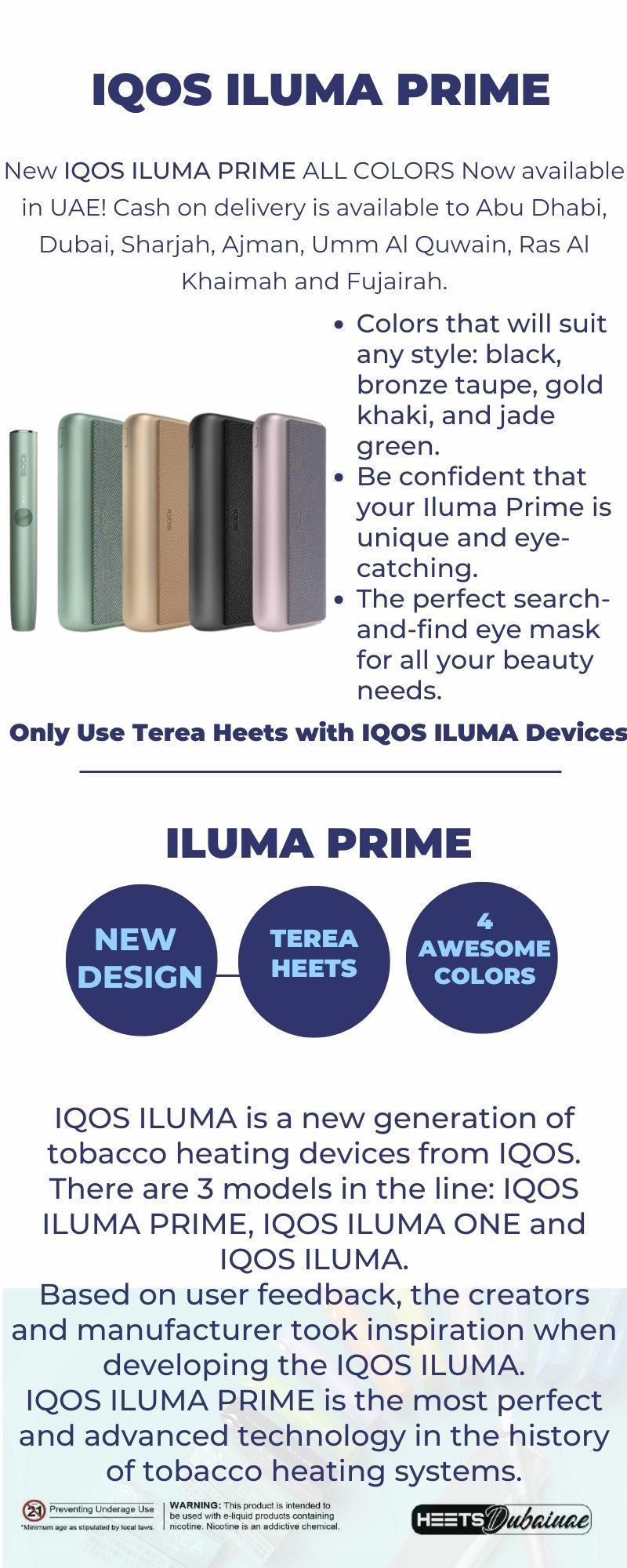The“New IQOS ILUMA Prime” isnowavailable inHeetdubaiUAE!OrderNowandgetyours Now!Weoffercashondeliveryto Abu Dhabi, Dubai, Sharjah, Ajman, Umm Al Quwain, Ras Al Khaimah and Fujairah.
