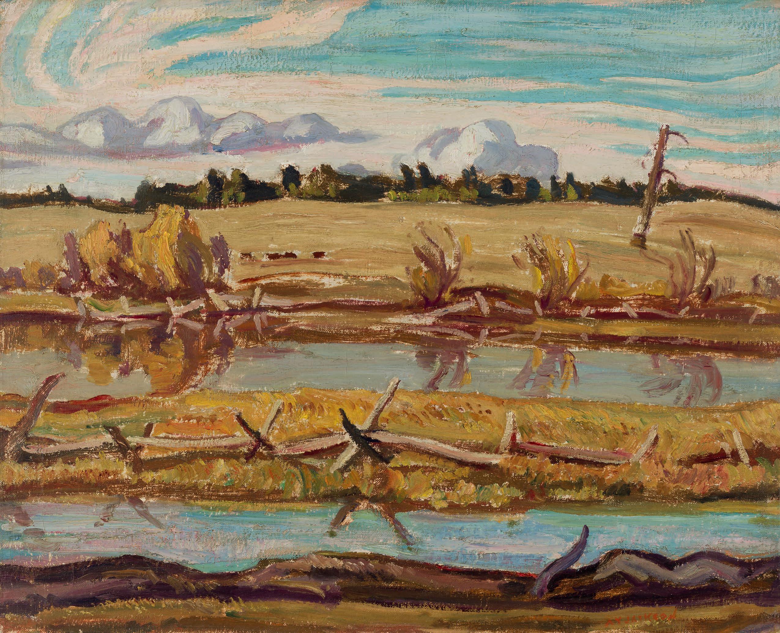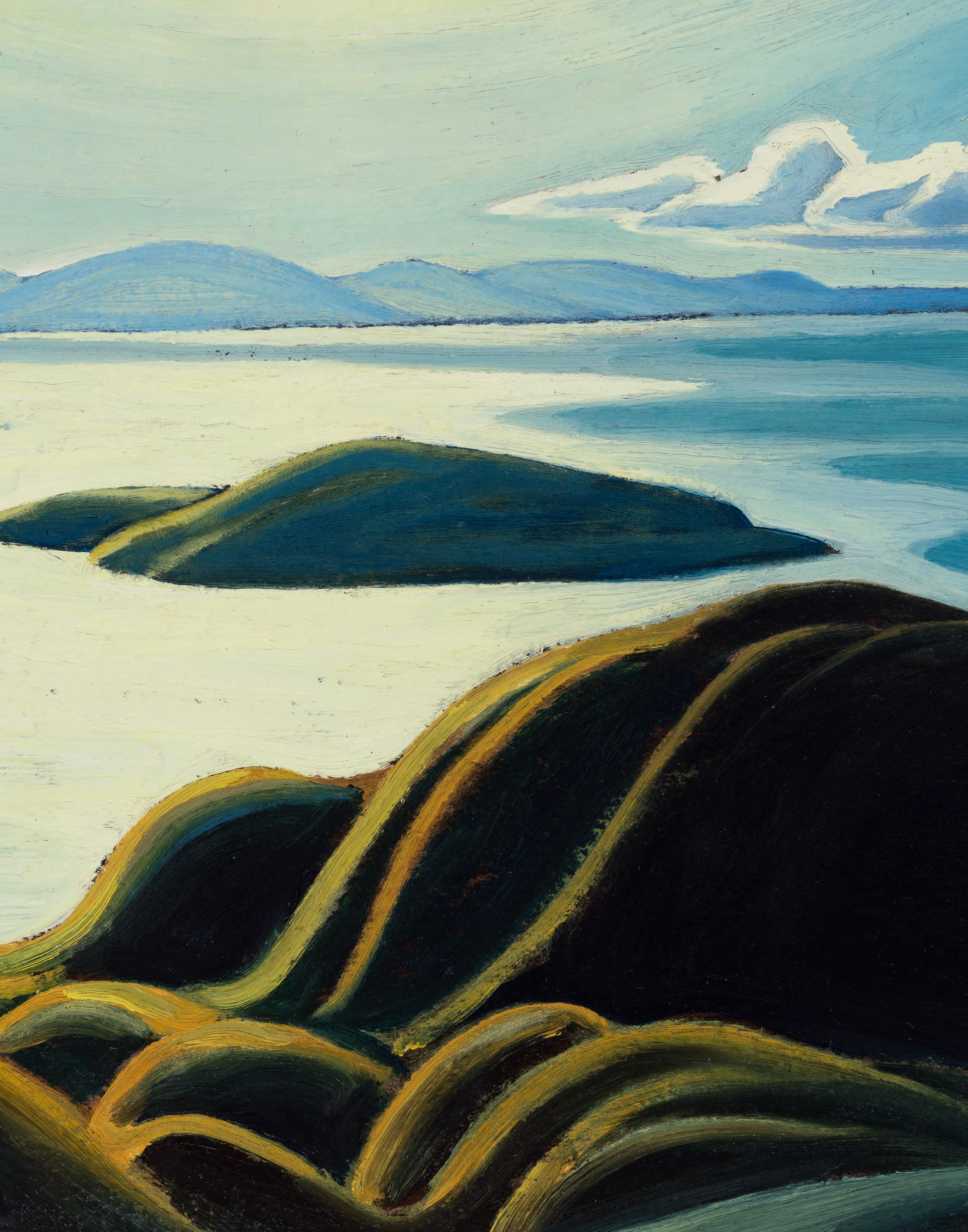 the works she acquired. The Group of the Seven held particular importance to her, its members having painted across the country: as part of this sale, exceptional works by Lawren Harris, J.E.H. MacDonald, and A.Y. Jackson showcase the Rocky Mountains at their most dramatic.