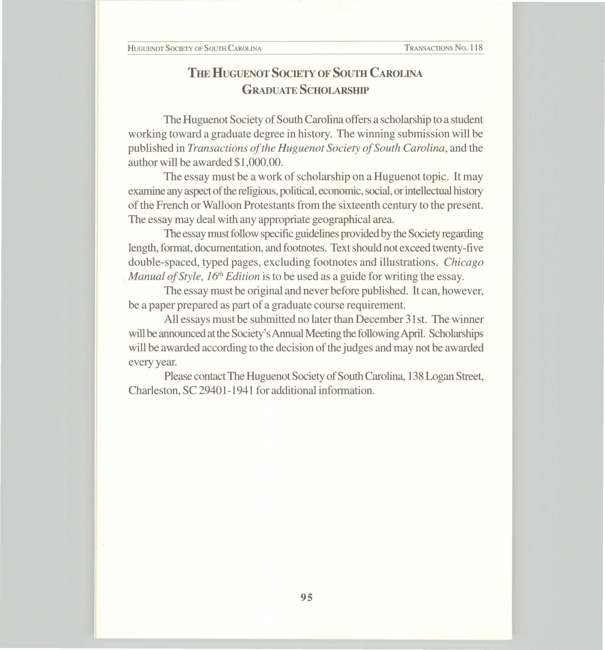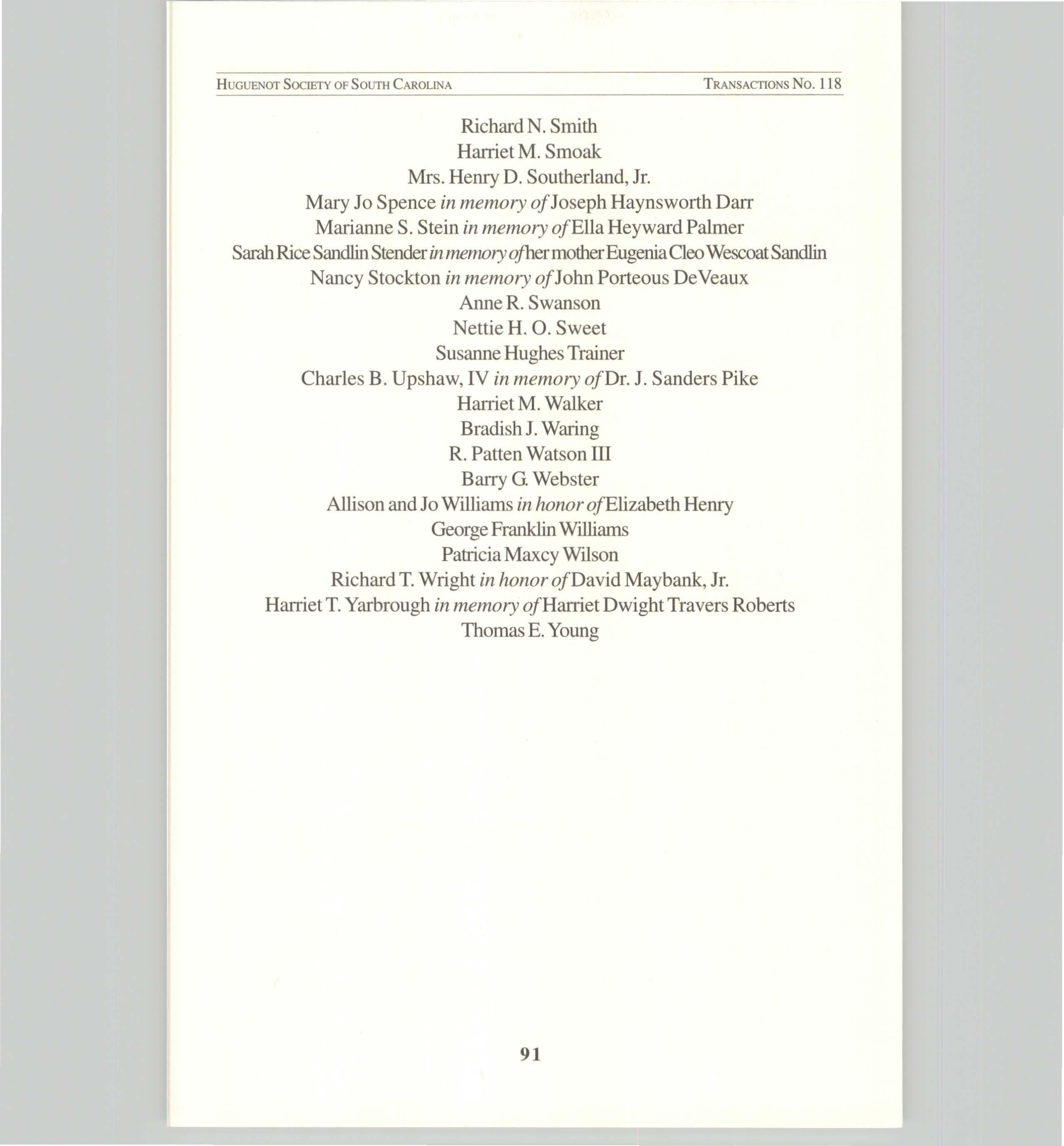 HUGUENOT SOCIETY OF SOUTH CAROLINA