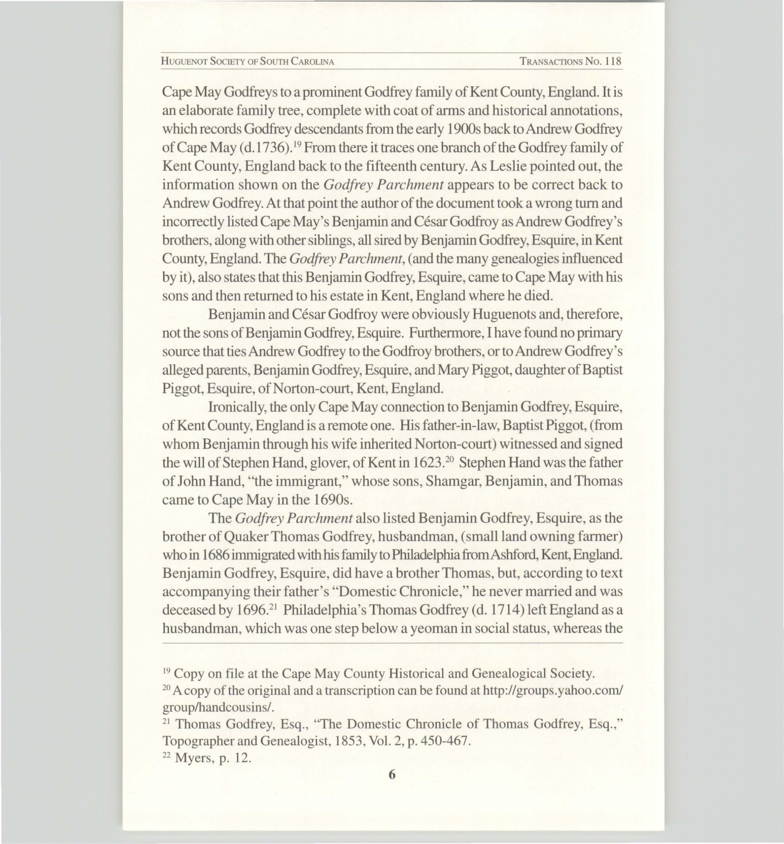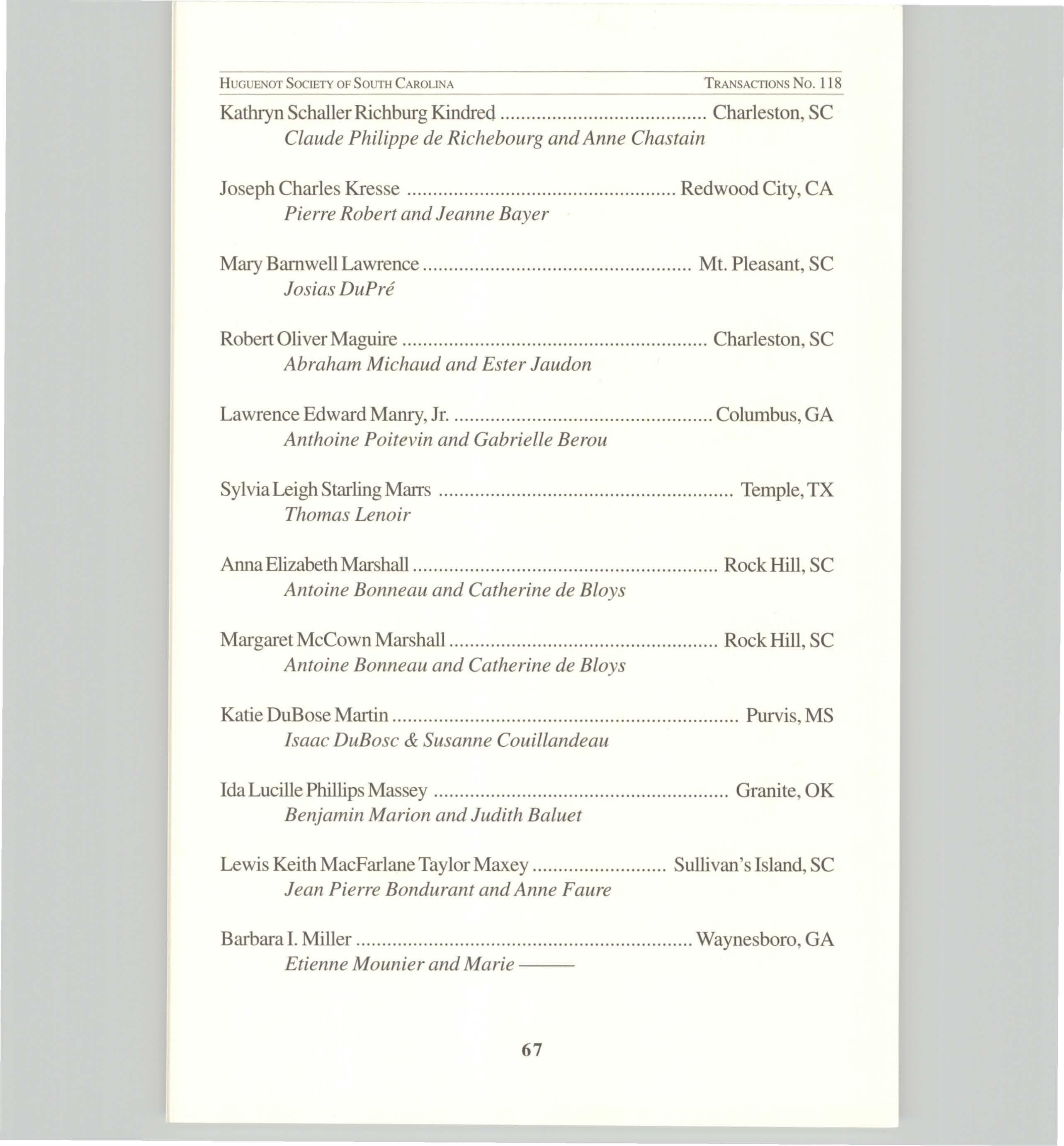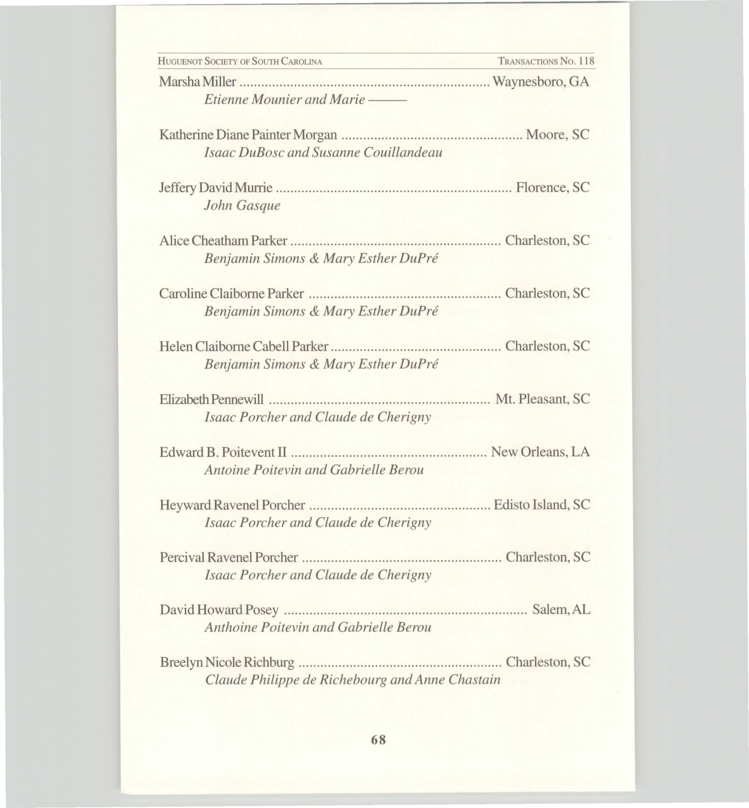 8 See pages 41-58 in the cited publication or pages 21-38 in Transactions of the Huguenot Society of South Carolina #115 (2011).