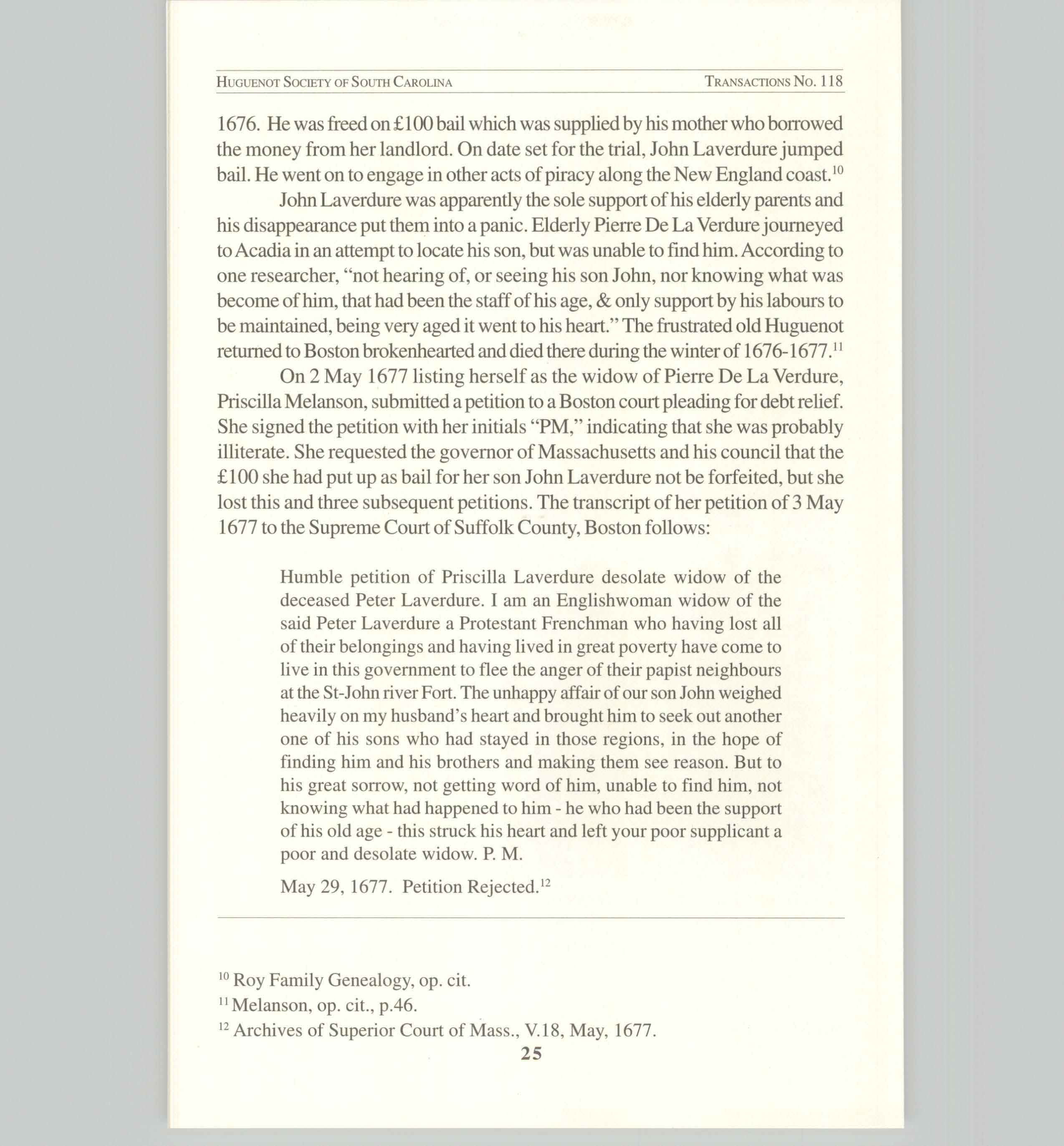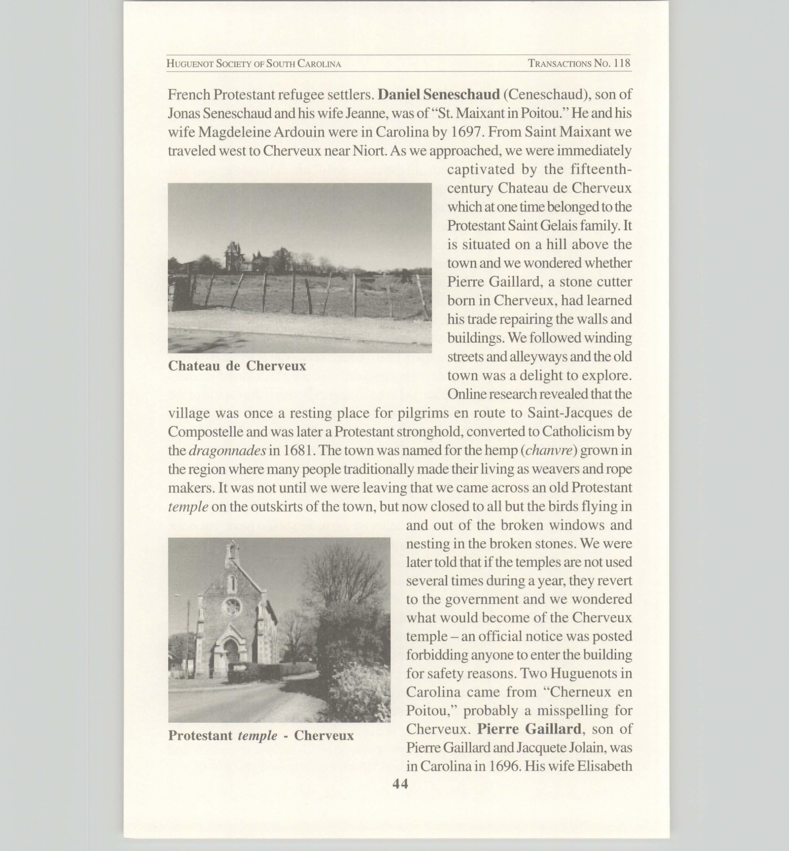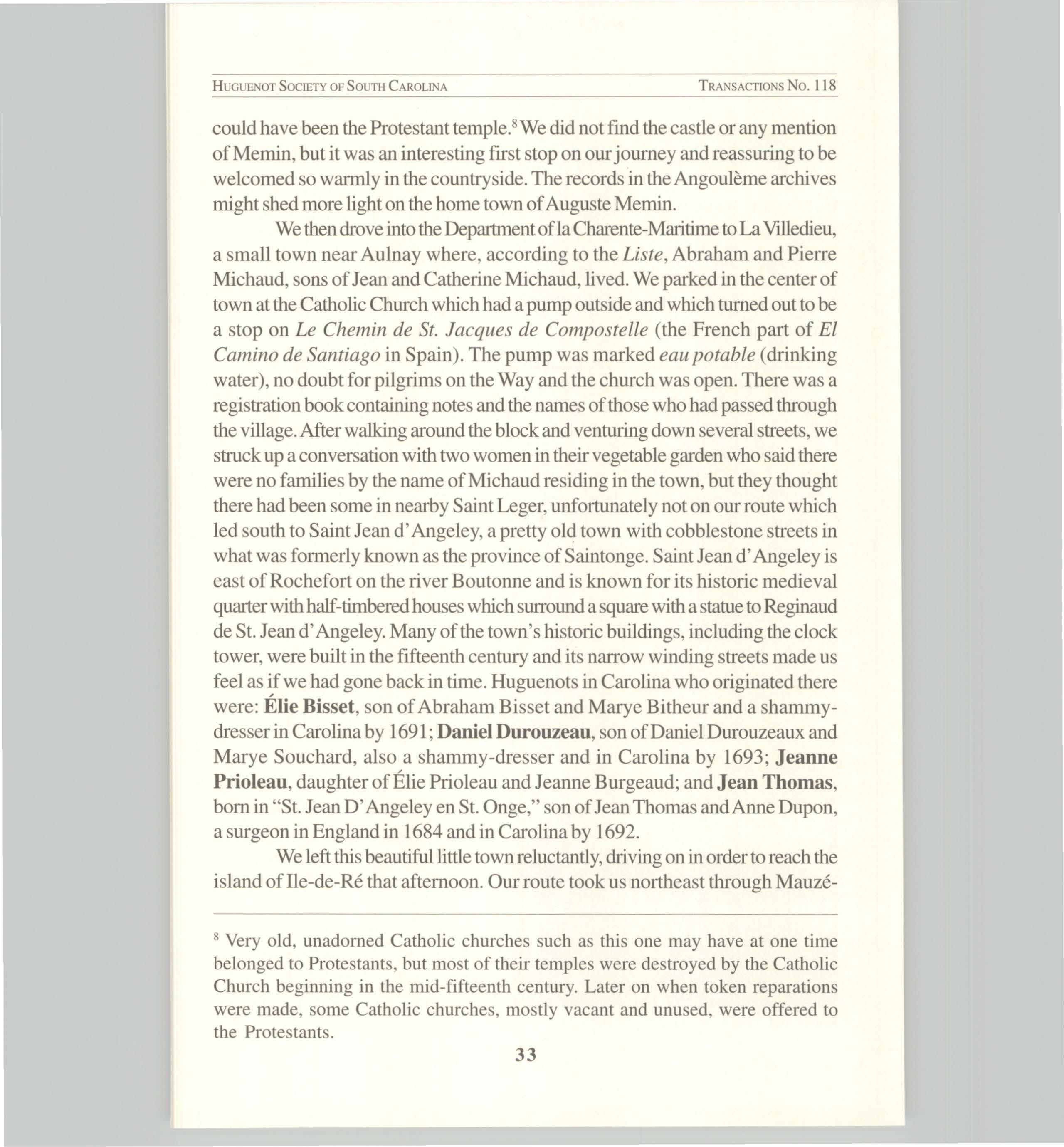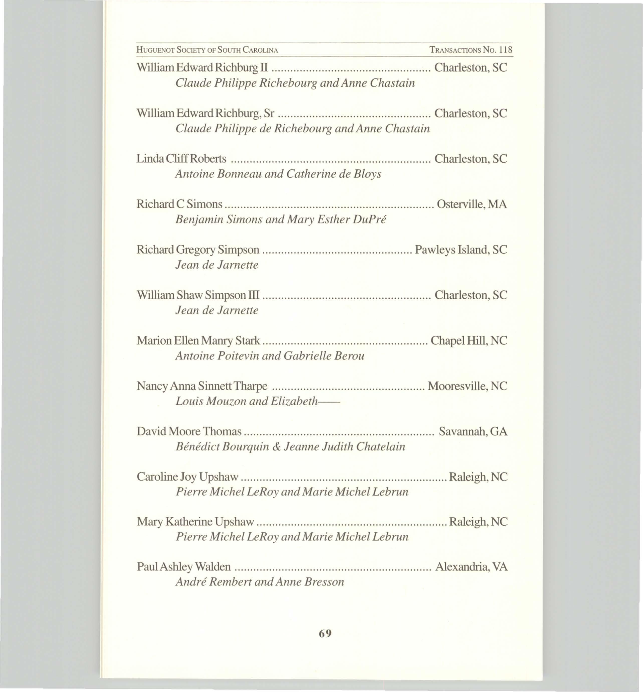 8 See pages 41-58 in the cited publication or pages 21-38 in Transactions of the Huguenot Society of South Carolina #115 (2011).