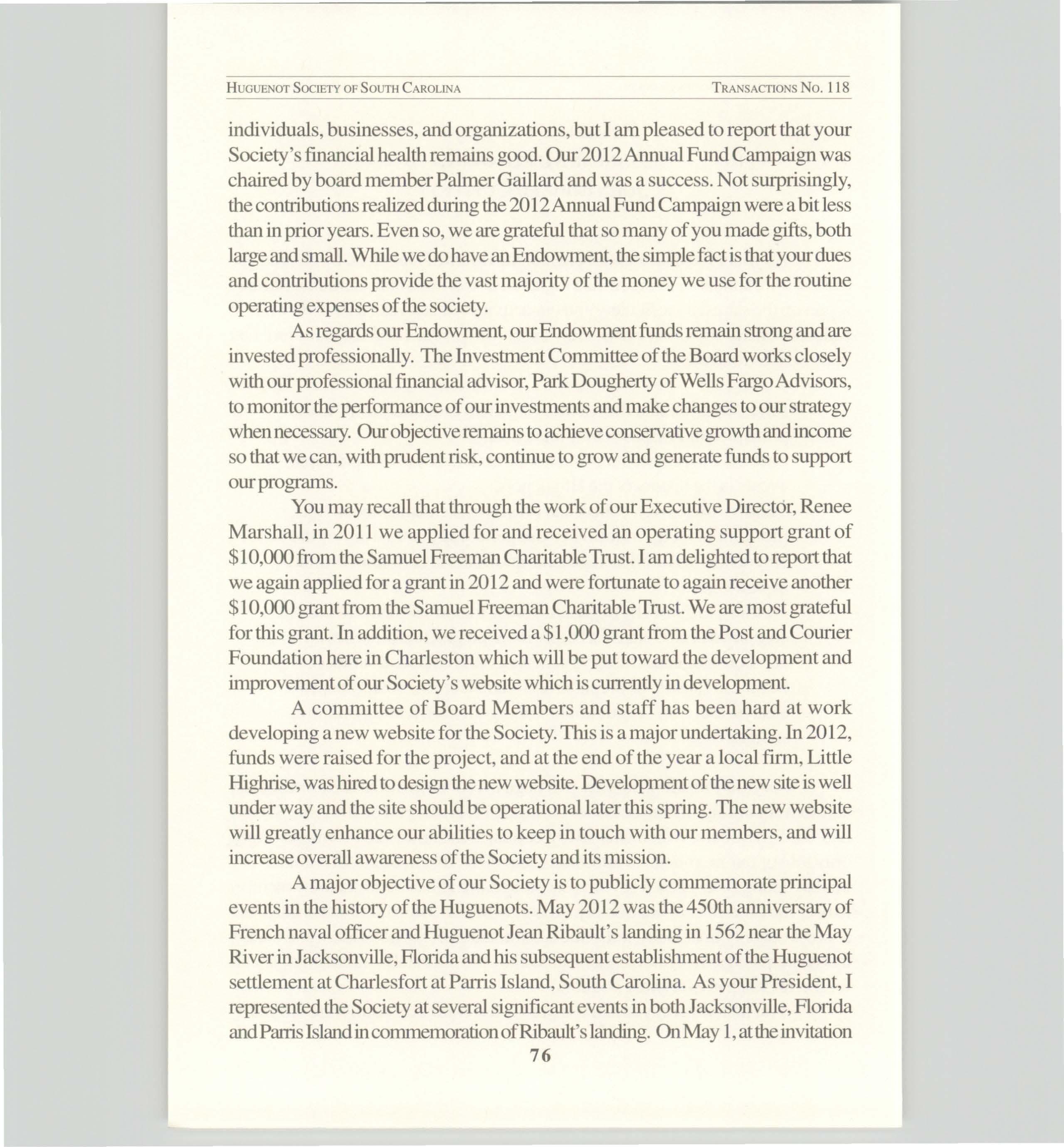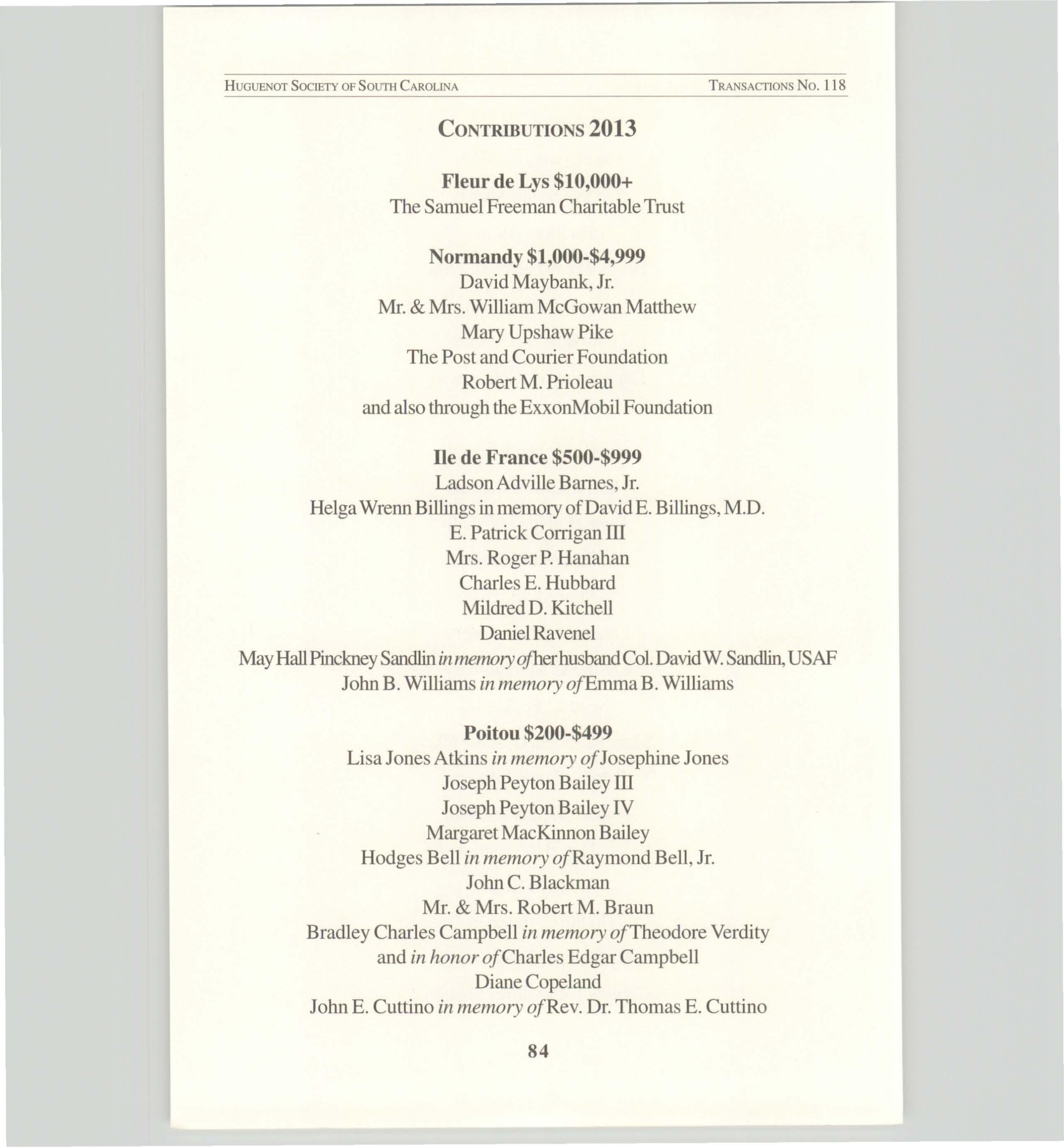 OF THE HUGUENOT SOCIETY OF SOUTH CAROLINA 1885-2013