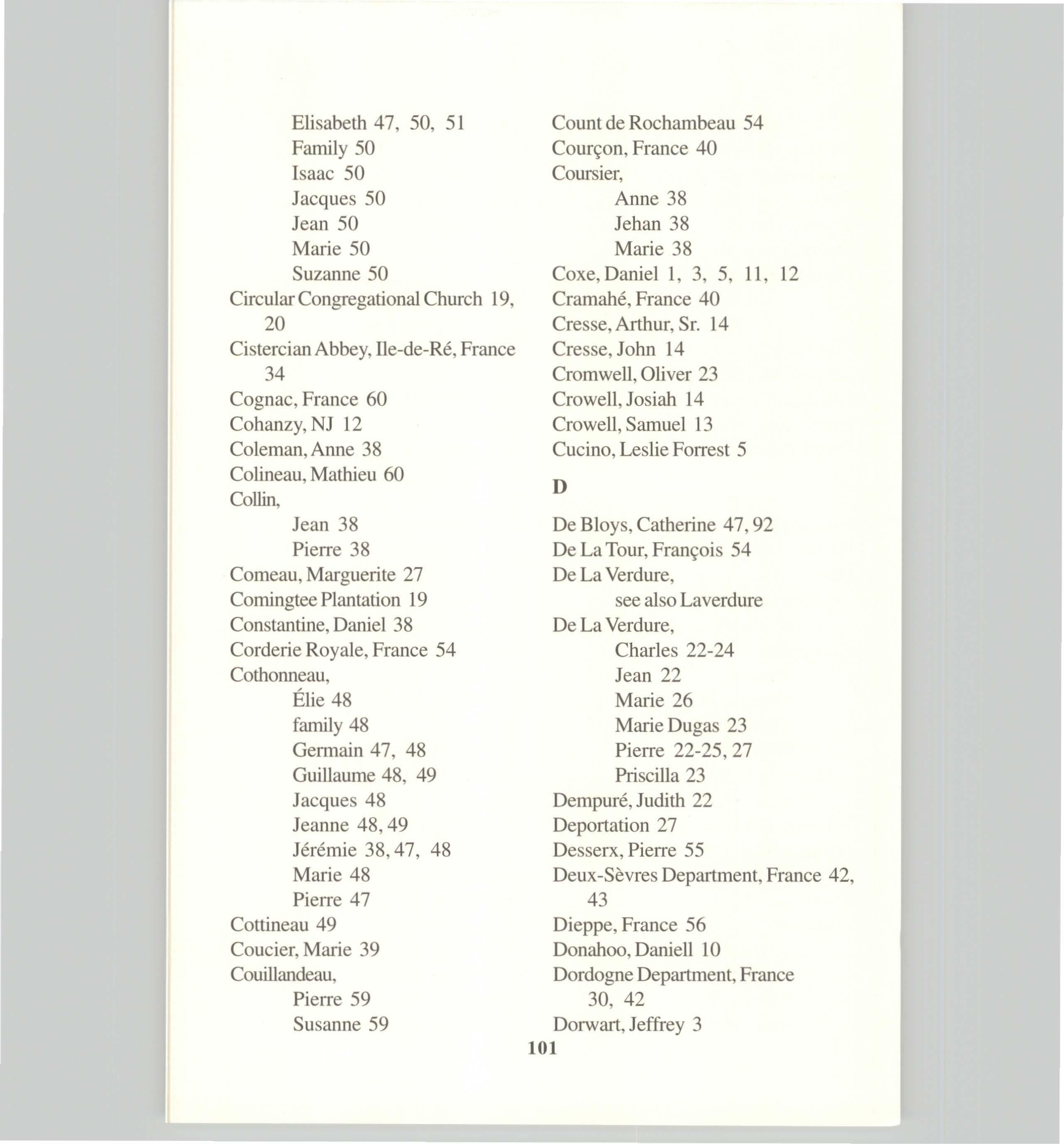 2 James P. (Jamie) Hand is a native of New Jersey where he specializes in the restoration of early colonial buildings. He is also a master decoy carver and guide for water fowl hunters and, although he has not found any Huguenots in his lineage, has done much research regarding Huguenots in Cape May County and West Jersey. His article, "Doctor Coxe and the Cape May Huguenots," was published in Transactions #115 (2011).