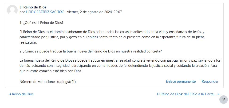 4. Tarea No. 1 Foro: El Reino de Dios, Fecha: 27/07/2024, Tarea: El Reino de Dios