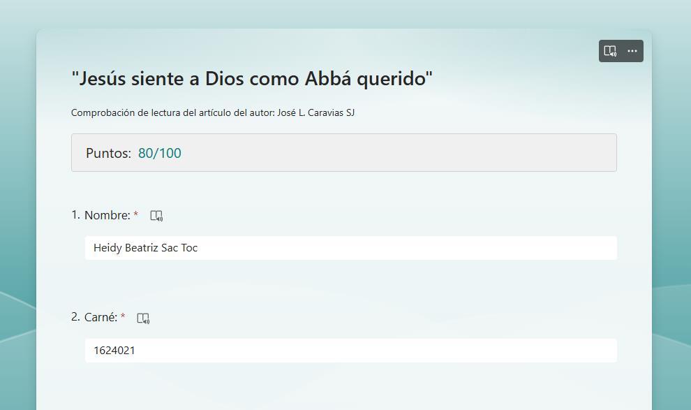 2. Laboratorio No. 1: Carta a Jesús, Fecha: 20/07/2024, Tarea: