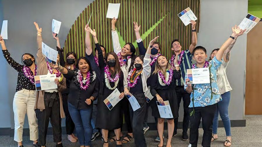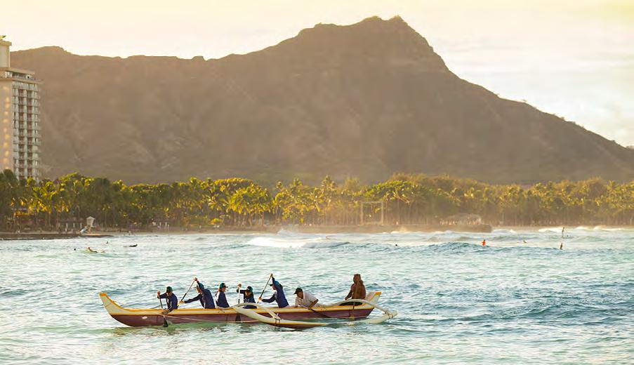 “The more that we commit ourselves to serving the greater good, the more likely we are to act in ways that allow us not simply to advance, but to leap forward into a future that’s brighter for us all.”Above: The HEI leadership team paddled in outrigger canoes as part of a team-building exercise. From left to right: Kurt Murao, EVP, General Counsel; Christine Ohashi, VP, Internal Audit; Darcy Endo-Omoto, VP, Executive Advisor to the President; Scott Valentino, Pacific Current President; Ann Teranishi, American Savings Bank President and CEO; Shelee Kimura, Hawaiian Electric President and CEO; Scott Seu, HEI President and CEO; Julie Smolinski, VP, Strategy and Corporate Sustainability; Paul Ito, EVP, Chief Financial Officer; AJ Halagao, VP, Corporate and Community Advancement.