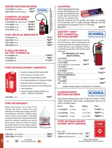 For Reliability and Value, Specify Sentry... 1110-79735 2½ lb. w/vehicle bracket............... $3095 1110-415899 5 lb. w/vehicle or wall bracket....... $4195 1110-32871 10 lb. w/wall bracket...................................................... $6995 1110-32932 20 lb. w/wall bracket................................................... $12795 VEHICLE BRACKETS 1110-30865 ABC 10 lb................................................................... $4695 1110-30937 ABC 20 lb................................................................... $4995 Hazmat charges apply to extinguisher shipments