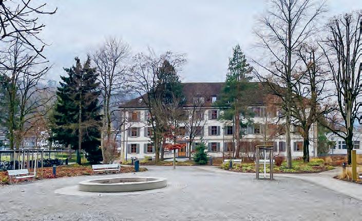 À l’arrêt de bus «Klinik Schlosstal», à Winterthur Wülflingen, le regard est d’emblée attiré par un vaste édifice de style classique datant du début du XIXe siècle. Il abrite aujourd’hui le site principal de l’établissement Integrierte Psychiatrie Winterthur (ipw). 1 Et avant? Une demeure appartenant à une personnalité fortunée? Le panneau à l’entrée me détrompe: nous nous trouvons devant l’ancien bâtiment industriel de la filature Beugger. Au XIXe siècle, le terrain situé entre la Töss et l’Eulach offrait des conditions idéales pour une exploitation industrielle. Après la faillite de son propriétaire, le canton de Zurich acquiert l’édifice en 1888 et le transforme en établissement de soins. Nous nous dirigeons vers le parc, entièrement réaménagé dans le cadre de la récente extension, selon les plans des architectes paysagistes Raderschall Partner. La vue sur l’imposante