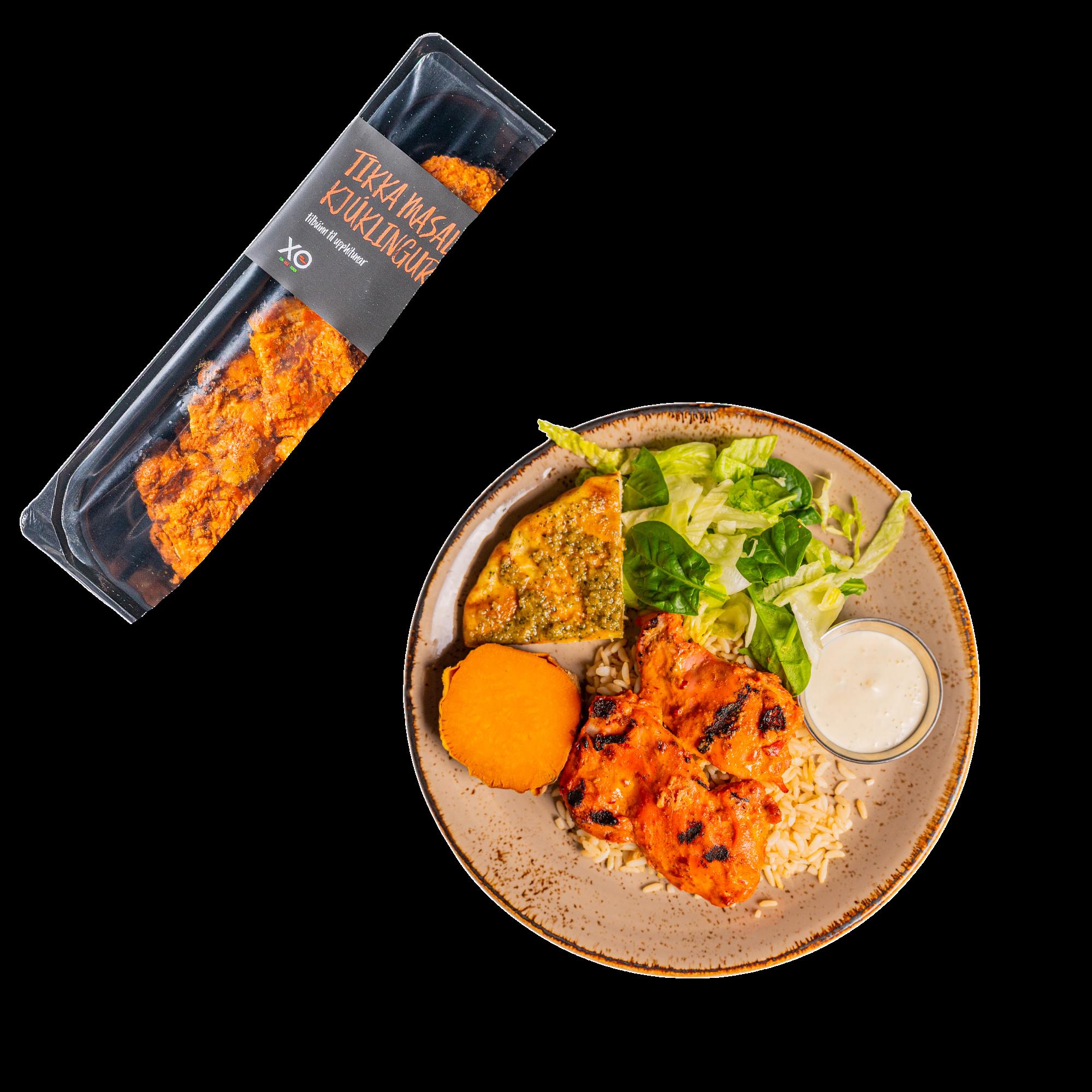 XO kjúklingur tilbúinn til upphitunar, sósur & pestó.