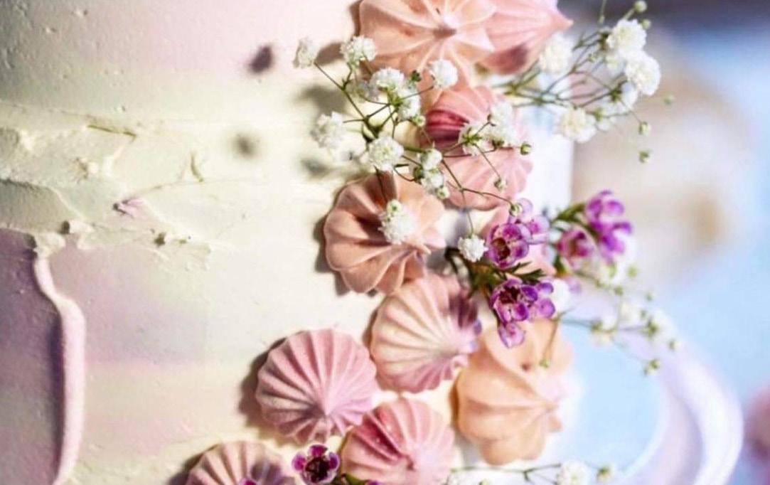 Pakkið blómastönglunum inn í blómalímband til þess að forðast að vökvi úr blómunum berist í matvælin, stingið blómunum hér og þar sem að ykkur finnst fallegast.
