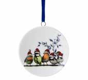 K10006 Weihnachtskugel Waldvögel Weihnachtsmannmütze 8 cm