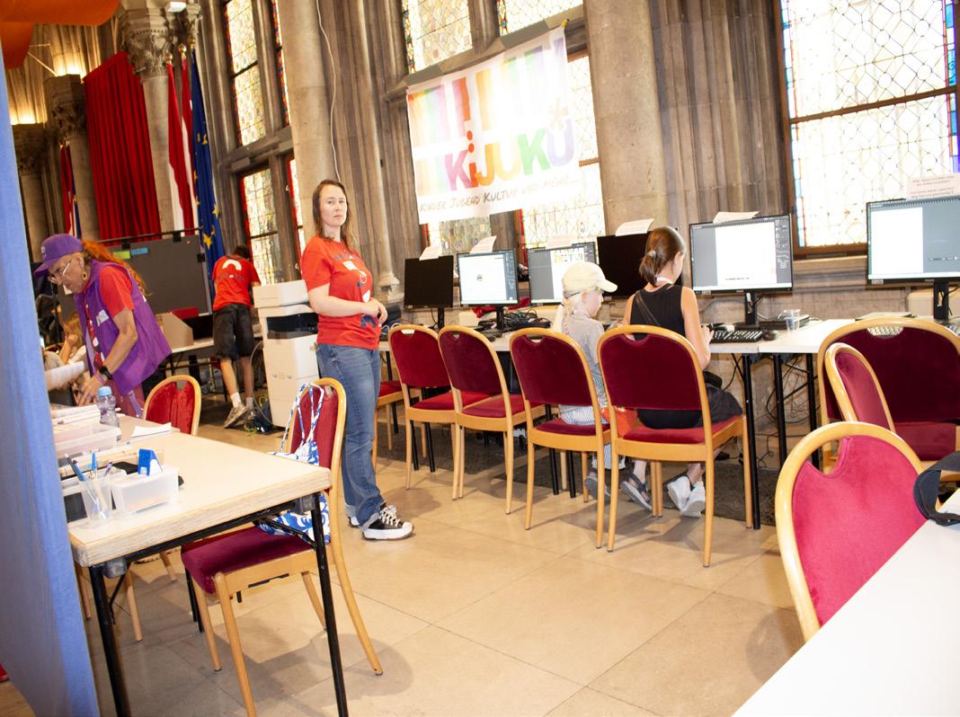 Am Eingang von Wienopolis befindet sich ein Anmeldepult. In