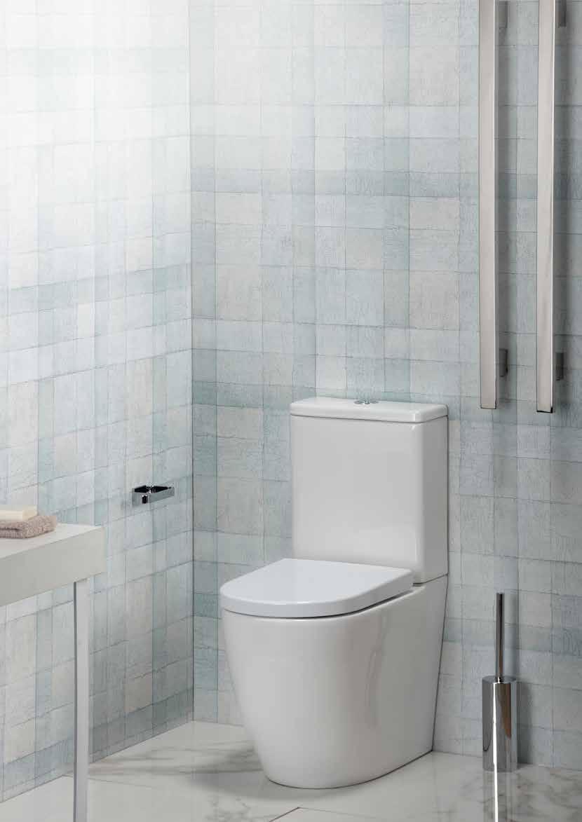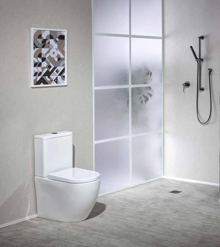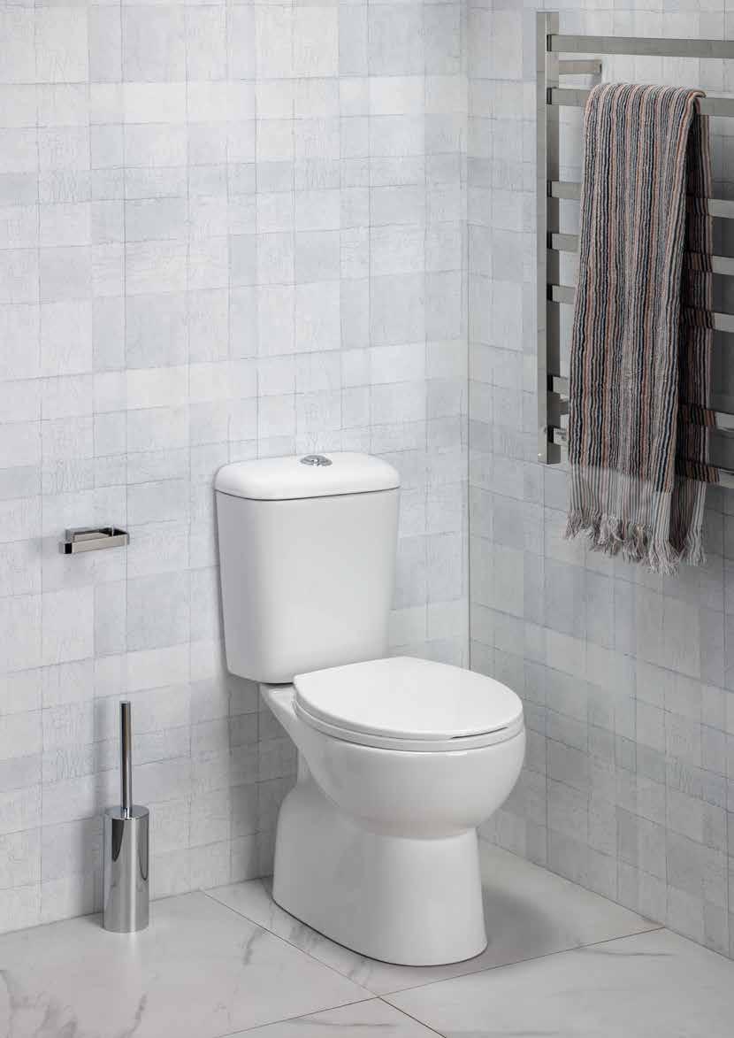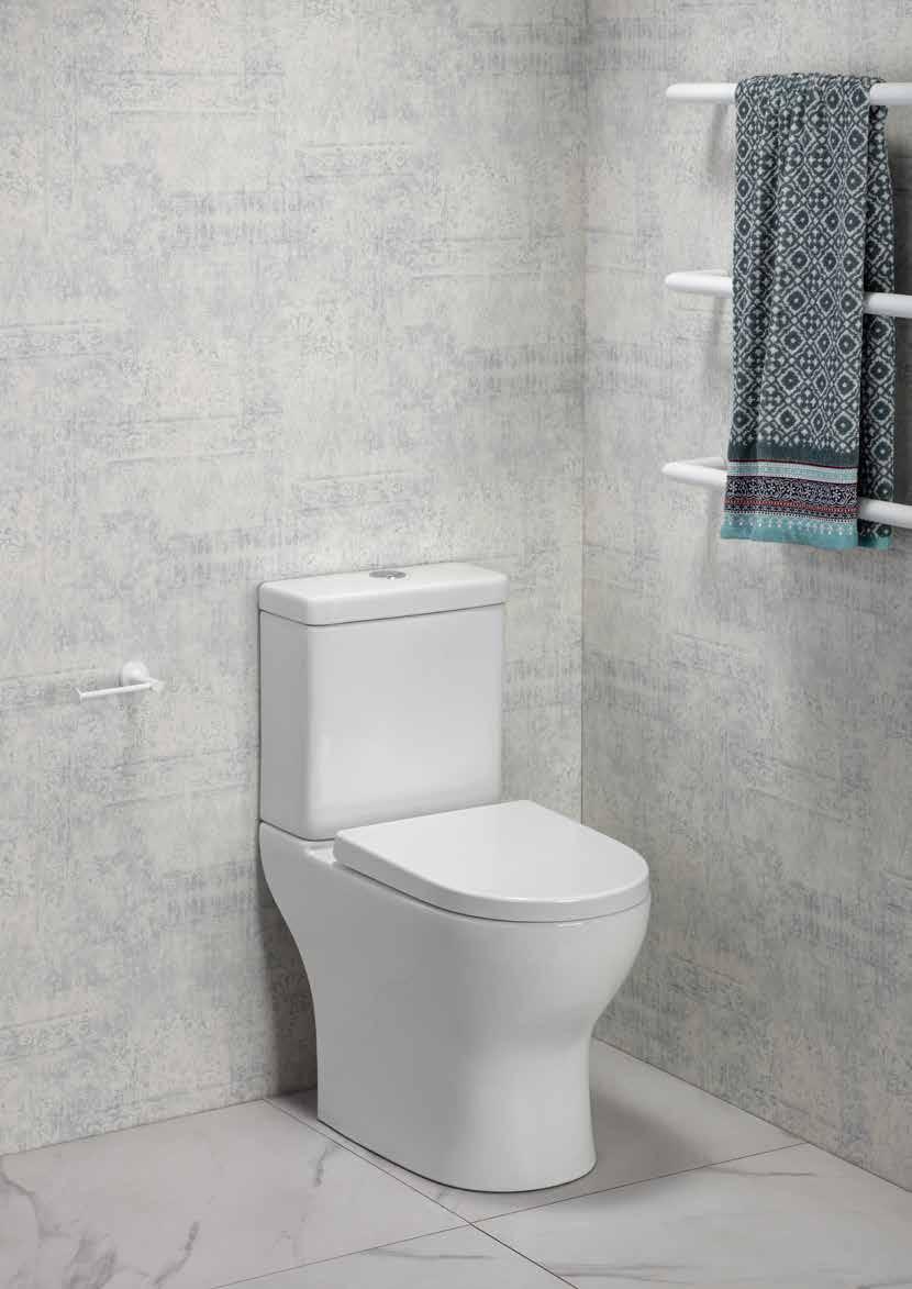 With this suite the pan fits back to the wall giving a more streamlined design and the benefit of concealing most of the plumbing connections.