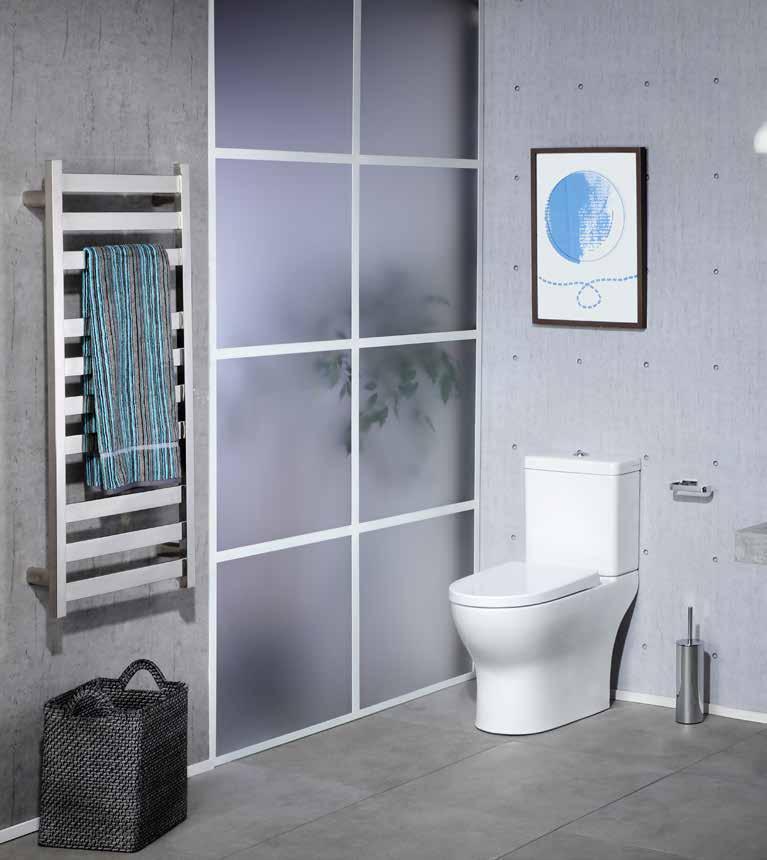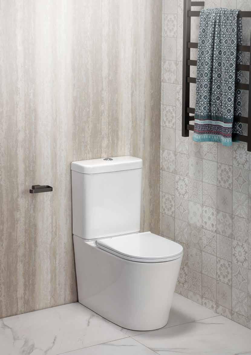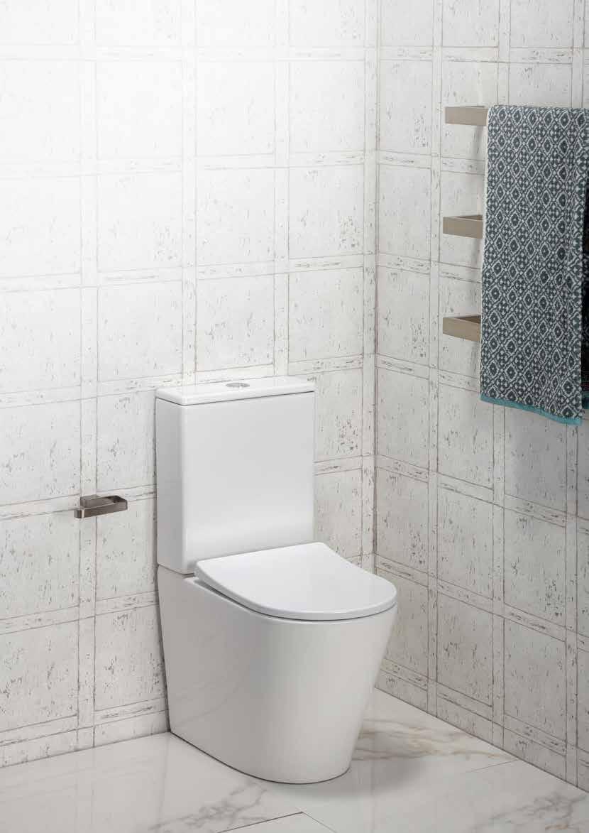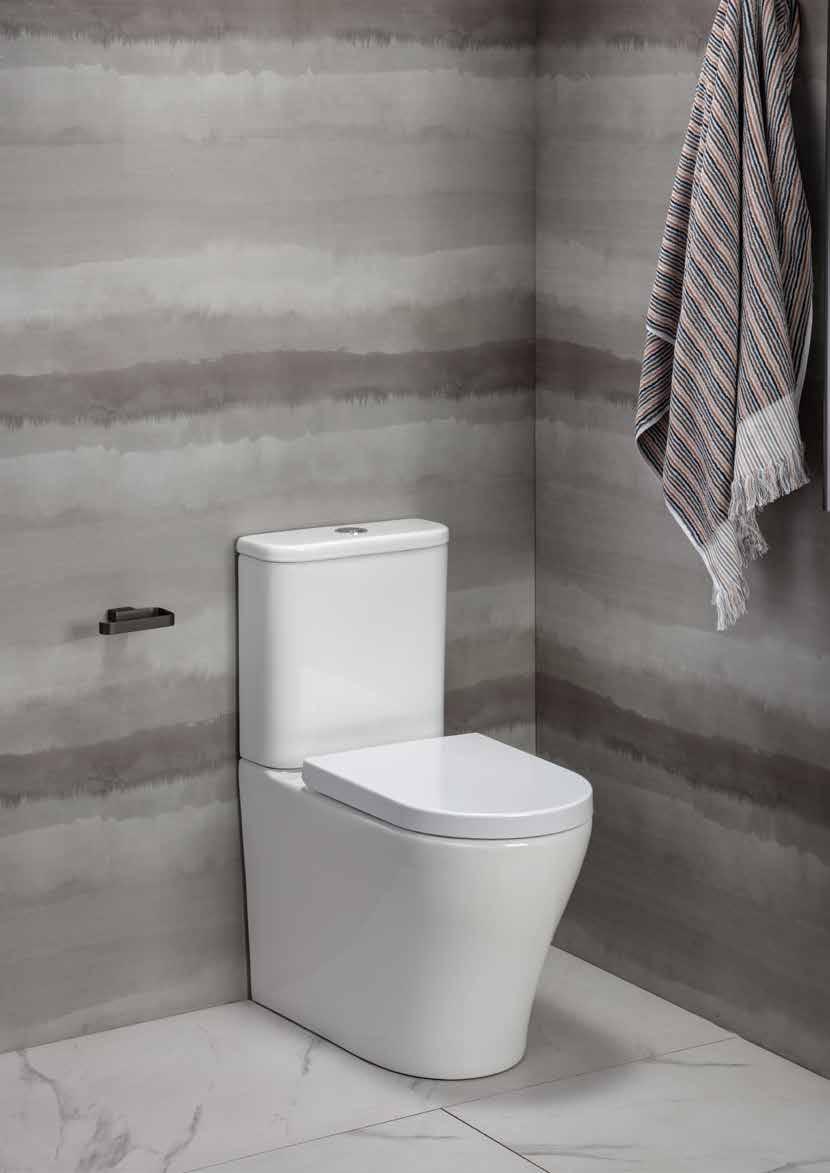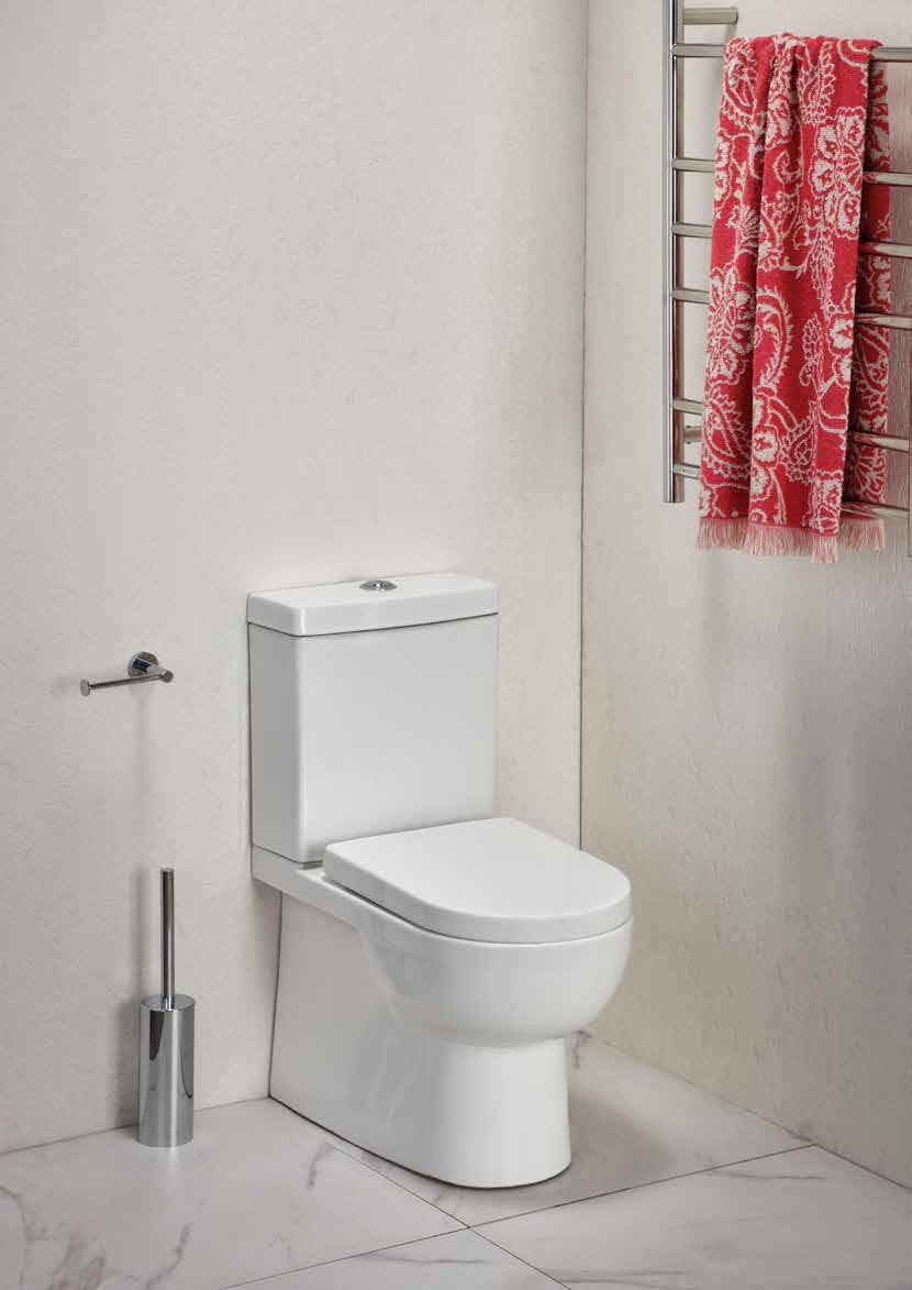 With this suite the pan fits back to the wall giving a more streamlined design and the benefit of concealing most of the plumbing connections.