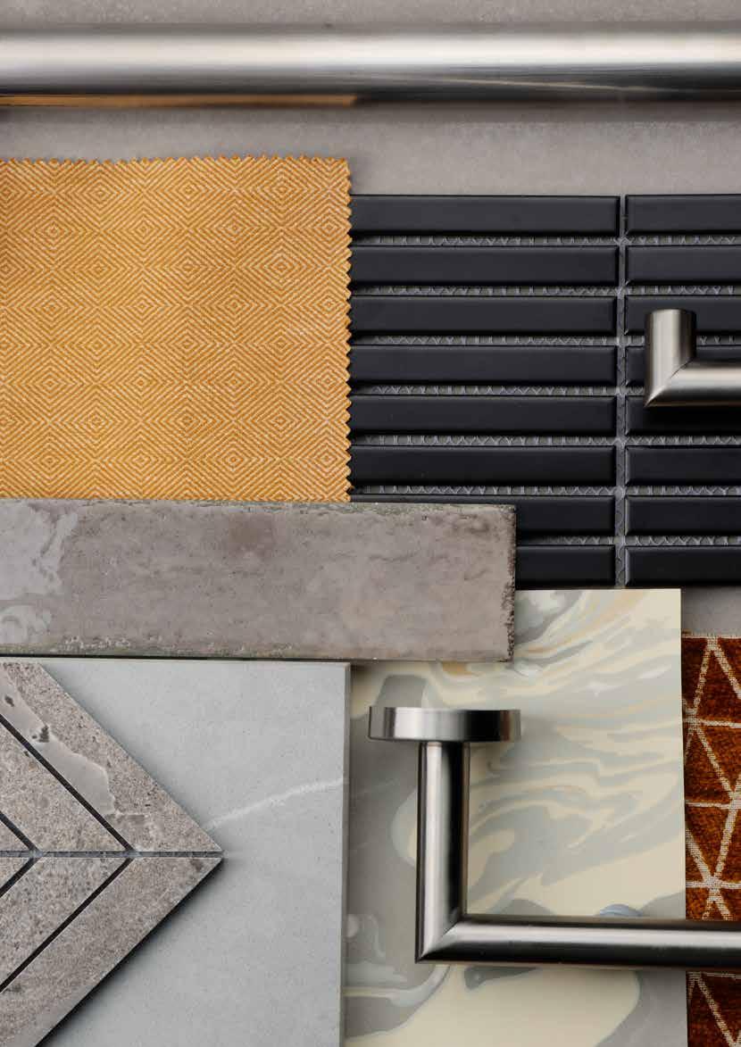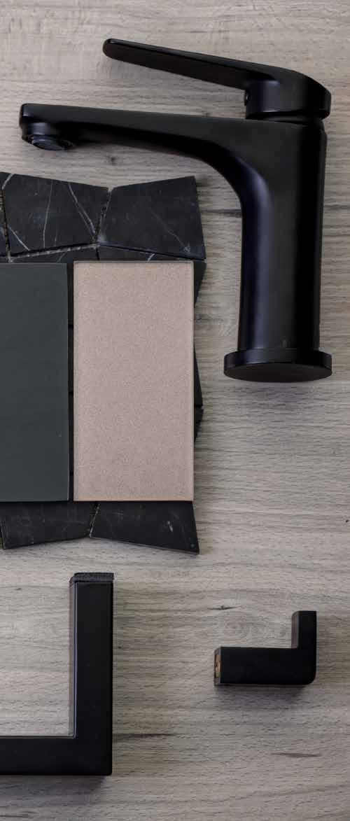 A strong colour providing a dramatic and contrasting anchor point when paired with white or lighter colours and lighter coloured woodgrains, natural stone, and tile textures. Alternatively match black with a mix of textures, muted colours and highlights from metallic finishes such as brass or copper for a confident modern statement.