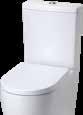 A classic style with clean lines accentuated by its shrouded smooth pan and sandwich style toilet seat.