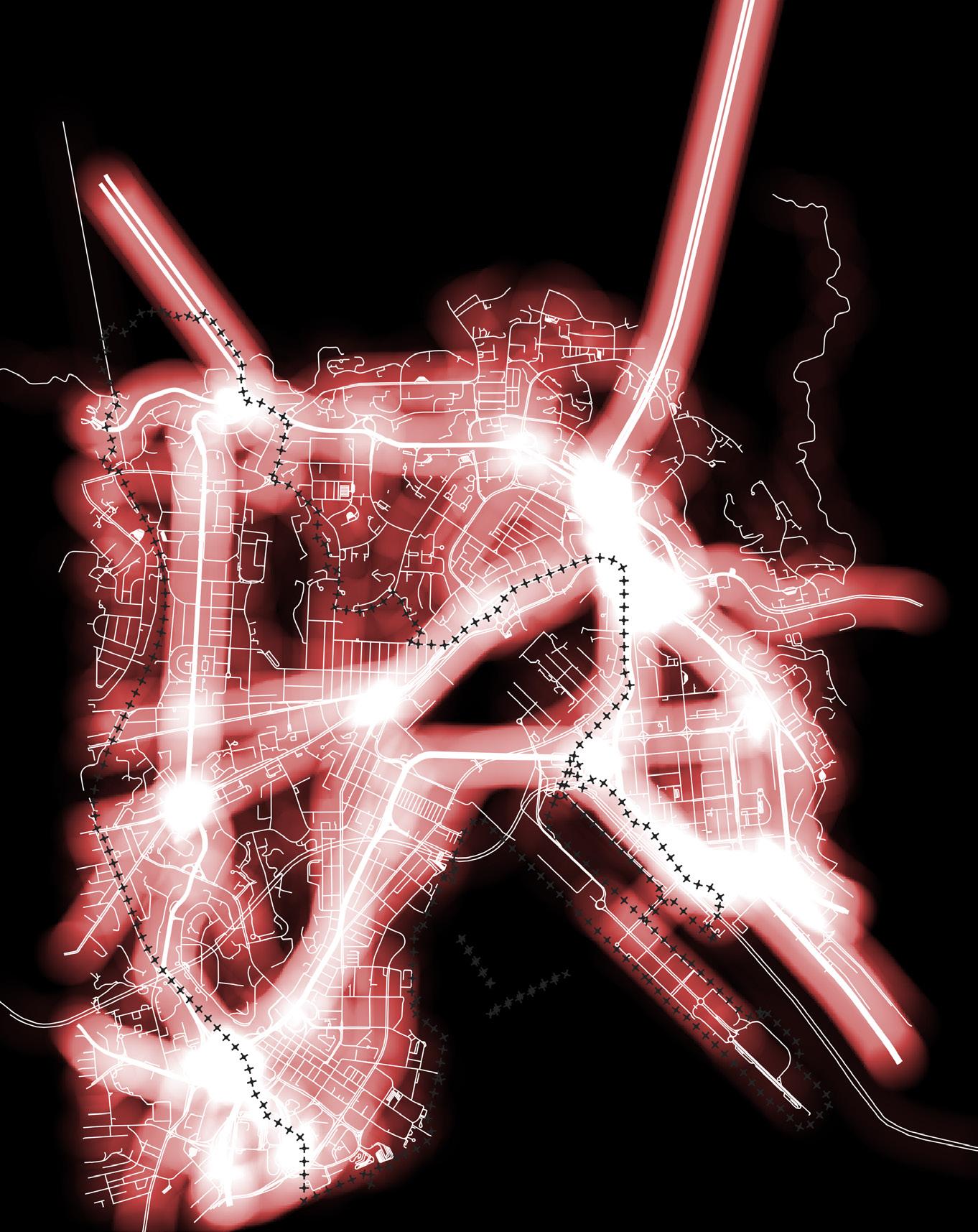 When the motorways collide, they often generate a traffic knot that affect the nearby pedestrian accessibility, which means that footbridge or a complicated crossing are needed when passing by.