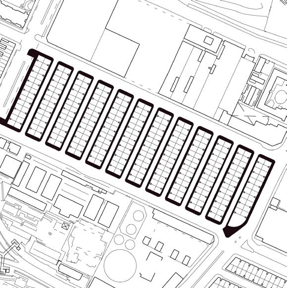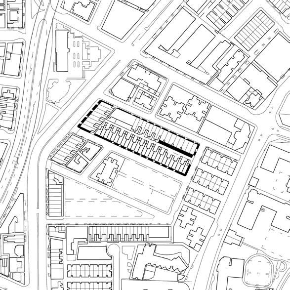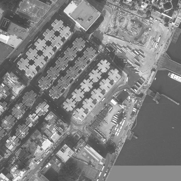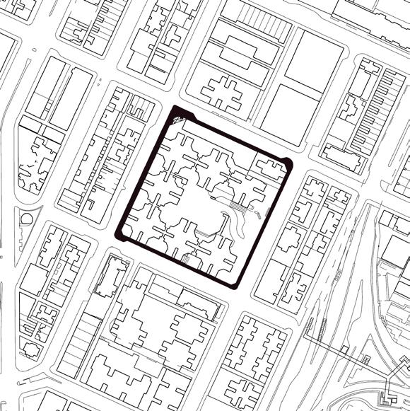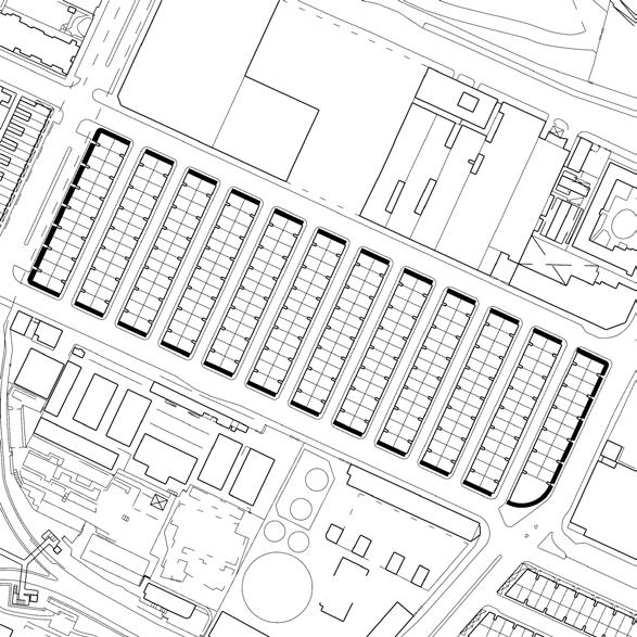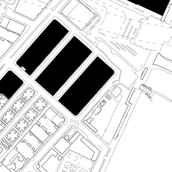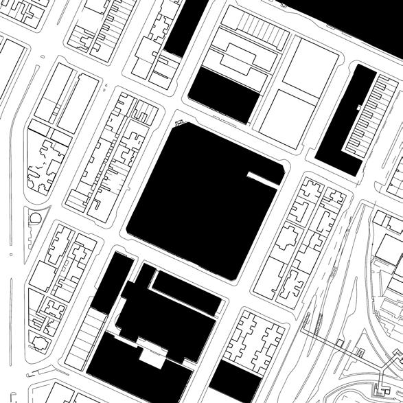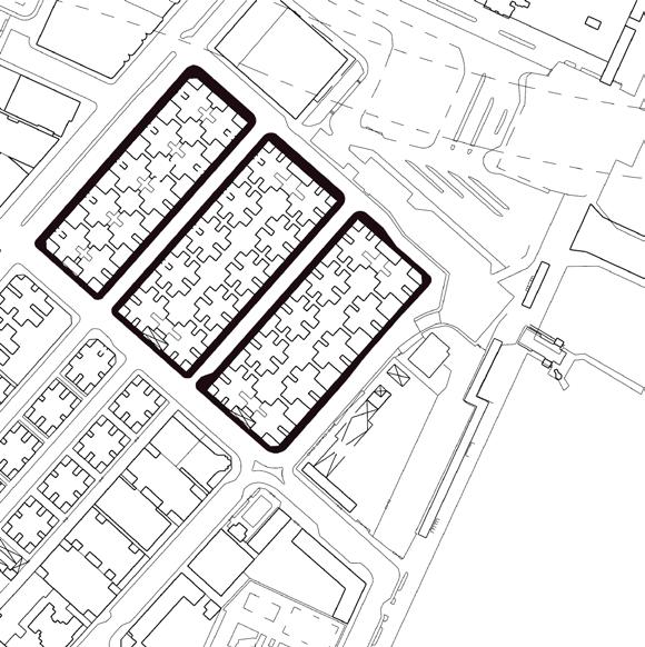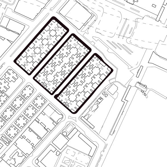 Respecting the grid shape of street blocks, tenement building often have the same orientation or even similar shape