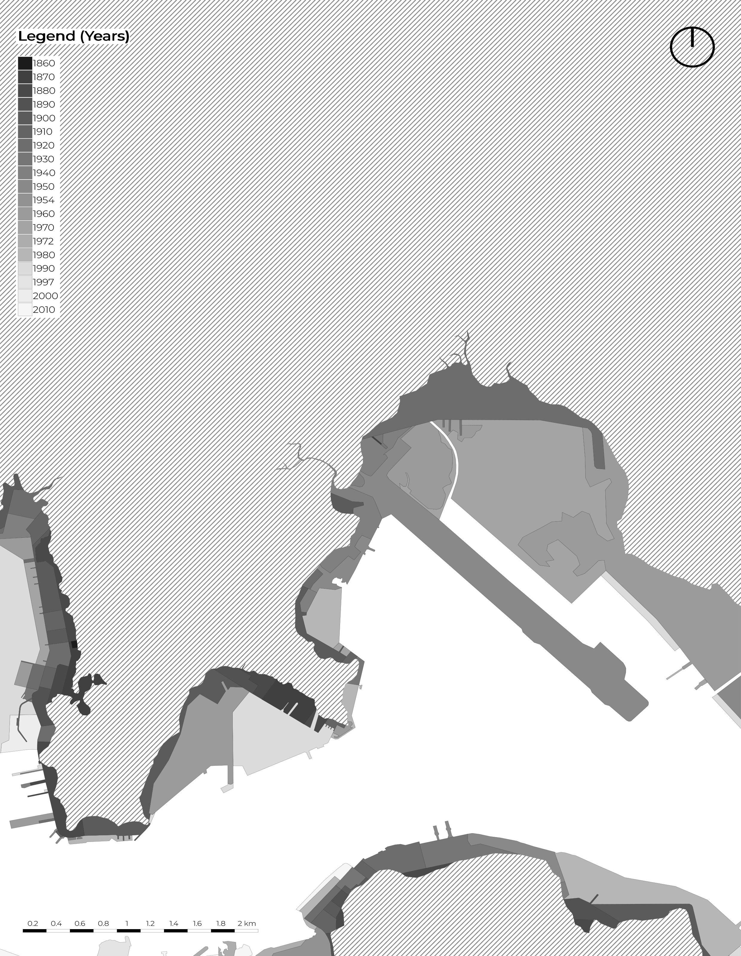 From the extracted borders in 1947 historical map, the logic of gridlines has kept and eventually expanded within the future developments and reclaimed land.