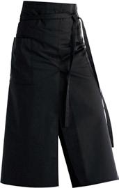 Väljä malli. Resorivyötärö ja nauhakuja. Vyölenkit. Sivutaskut. Reisitasku oikeassa lahkeessa. Haarakorkeus edessä vyötäröresori mukaan lukien 27 cm ja lahkeen leveys 48 cm koko M. Painonapeilla säädettävät lahkeensuut. Lahkeen sisäpituus 86 cm kaikki koot. Valmistettu luonnonmukaisesti tuotetusta puuvillasta.