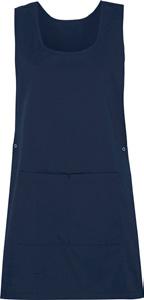 Kevyesti muotoon ommeltu malli. V-pääntie. Lyhyet hihat. Etutasku avaimenpidikkeellä. Vyötärön leveys säädettävissä. Sivuhalkio. Keskiselän pituus noin 82 cm koossa M. Valmistettu kierrätetystä polyesteristä.