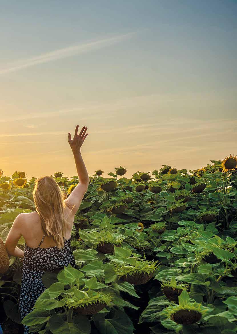 På högsommaren ser fälten med solrosor ut som ett gyllene hav.