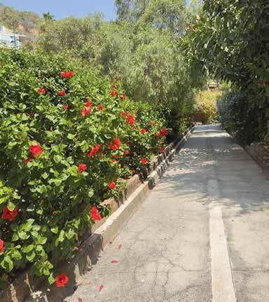 Kyrkogården är en rofylld och vacker plats, där blommande hibiscus pryder murarna. Det är en plats för eftertanke mitt inne i Málaga stad.
