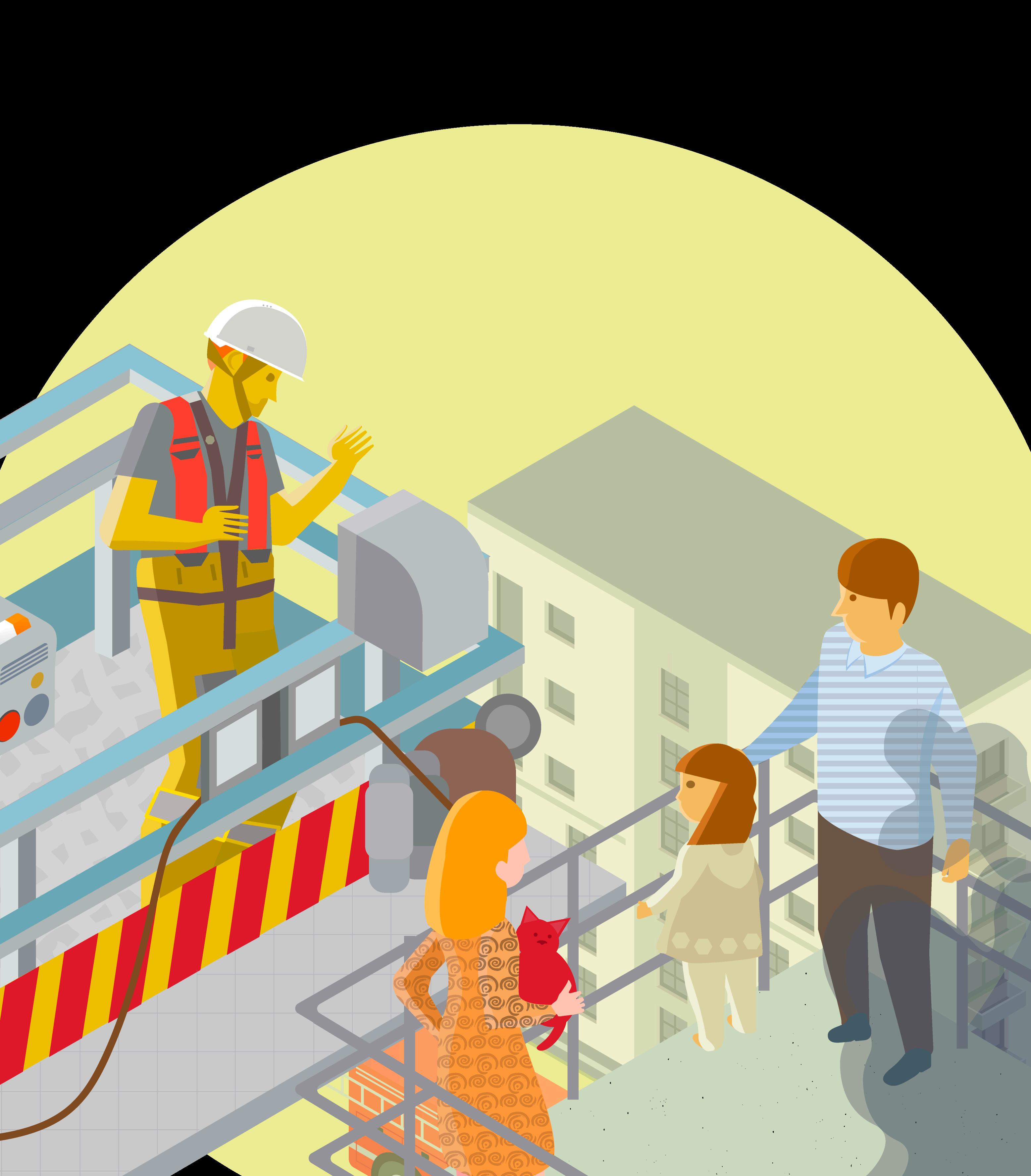 Instructions: Stay in your home – go to the balcony or by a window – call 112 – wait for help