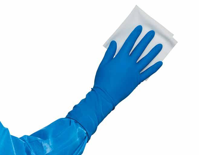 Anatomically shaped and designed to be double-donnable Textured surface for good grip Beaded cuff for stable fit on the arm Compatible up to ISO Class 4 & EU GMP Grade A
