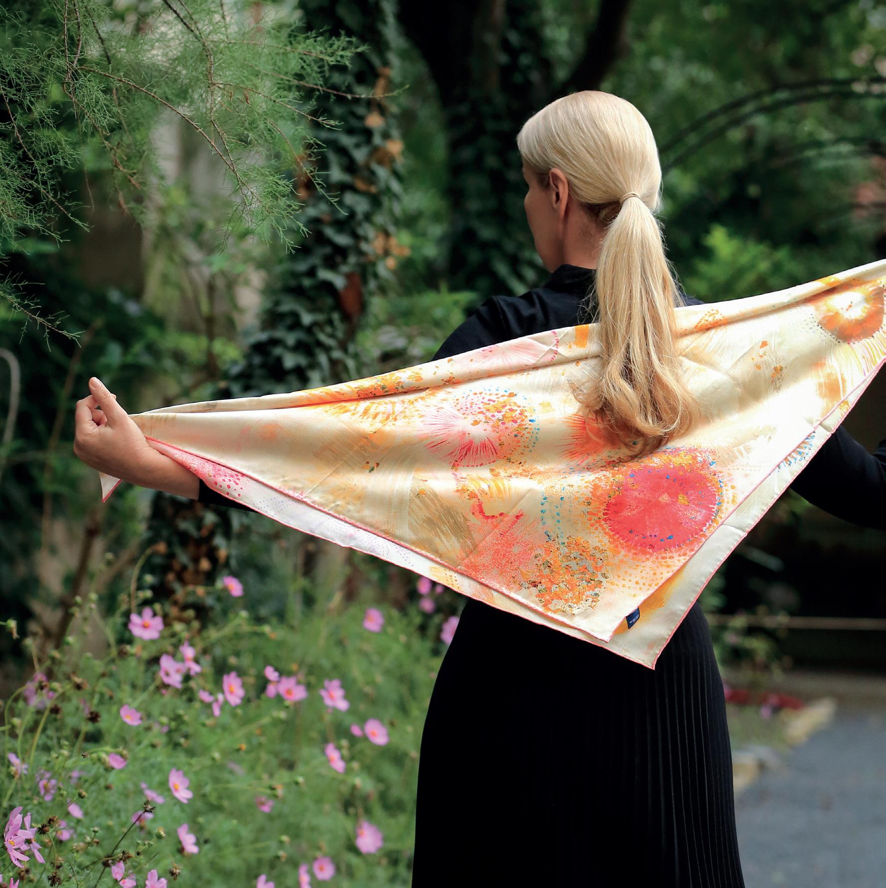 Portfolio značky ETERNAL BY HELENA, které si můžete prohlédnout, vyzkoušet i zakoupit v Klášteře minoritů Praha, je nově doplněno o luxusní hedvábné šátky s vysoce kvalitním ručním obšitím. Každý z těchto šátků je malým uměleckým dílem, unikátním nadčasovým doplňkem, na který je přeneseno originální malířské plátno s autorskou tvorbou Heleny Kohoutové.