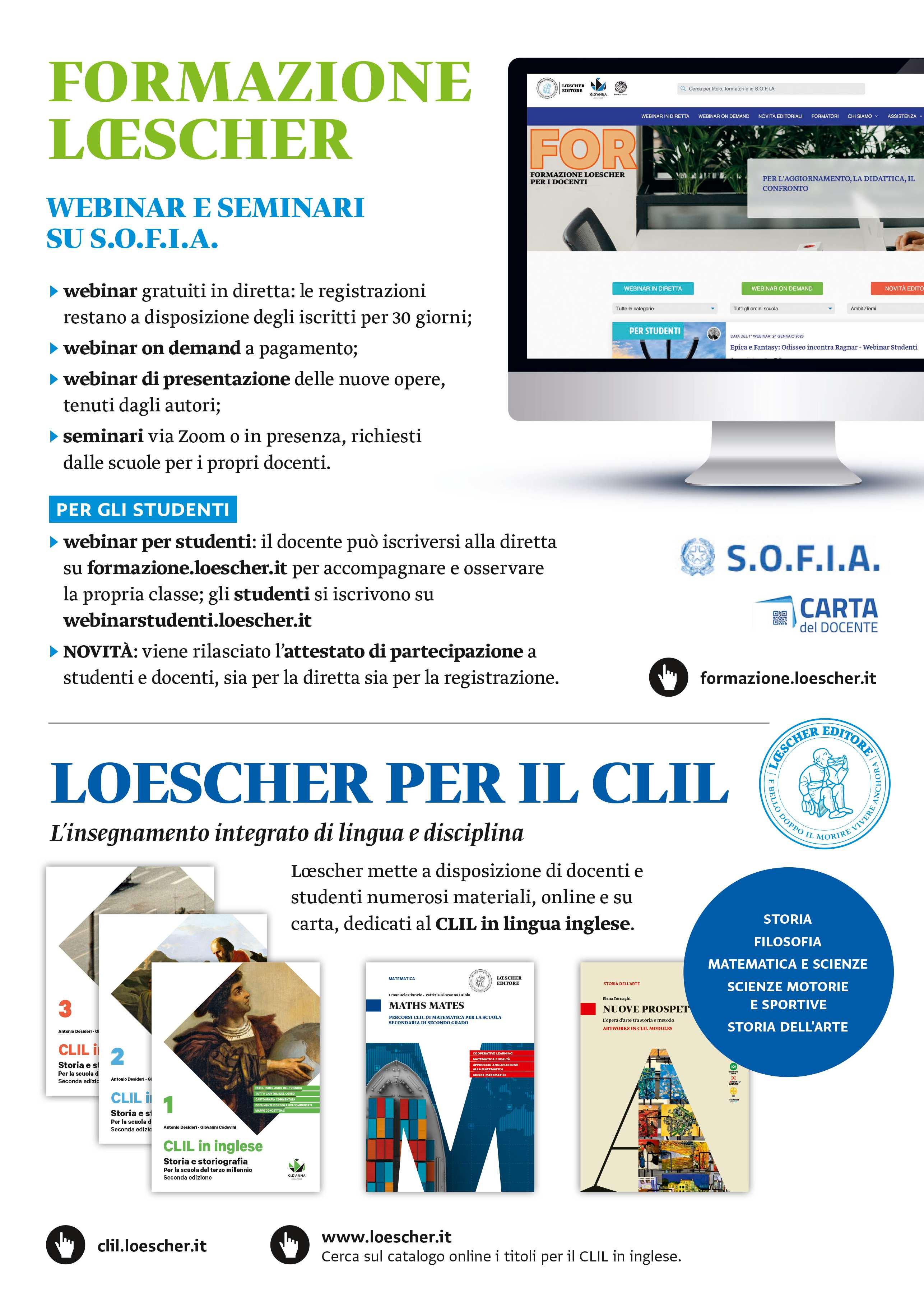 La distribuzione dei titoli Cambridge, Helbling e Loescher Editore è a cura di Loescher Editore. Per contatti vedere le Agenzie Loescher di Zona (Distribuzione) a pagina 64. Librerie, istituti privati e scuole paritarie possono inoltre avvalersi del sistema d’ordine online “StraOrdinario” per e ettuare i propri ordini in maniera rapida ed e cace: www.loescher.it/straordinario