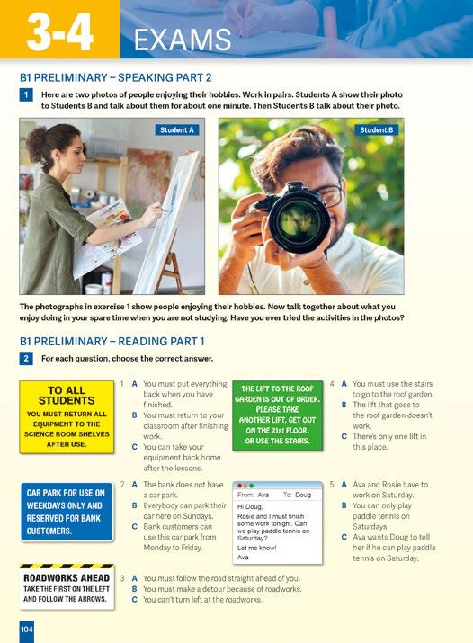 Il corso sviluppa gradualmente e sistematicamente le quattro abilità, includendo attività mirate su oracy e interaction, fondamentali per gli esami. Grazie all’approccio ‘scaffolded’, fornisce strategie per consolidare le competenze di base, rafforzare la ducia e raggiungere l’autonomia nell’apprendimento. Include percorsi speci ci per l’esame INVALSI e la certi cazione B1 Preliminary for Schools, simulazioni uf ciali e l’accesso al Test & Train mini, un pratico strumento digitale per esercitarsi anche da smartphone.
