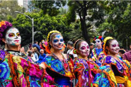 Vienen corriendo Yo pasao regalos y flores Los desfiles son bellos La comida es genial Calveras y cruz Disfraz y maquillaje