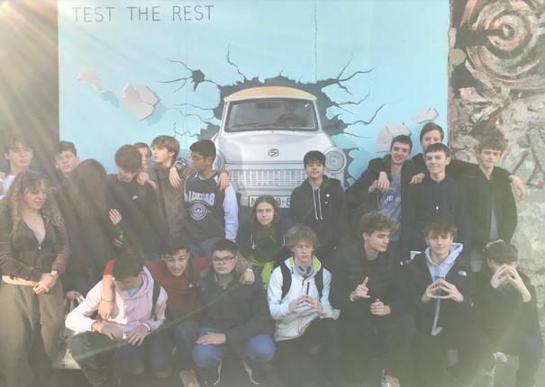 Our first day started with a guided tour of Berlin: we saw the Reichstag (and heard some nostalgic echoes of GCSE History in what the tour guide had to say!) the Holocaust Memorial and an endearing display of the East German Trabants, the one available car model in the GDR for which families would wait up to 12 years. At the request of Mrs. Hess, the tour guide would speak first in German, and then one of us would have to translate it for the group, a telling exercise that revealed our less than firm grasp of German numbers. The tour finished at Checkpoint Charlie, where I have now discovered the iconic “You are leaving the American Sector” sign still stands, albeit right next to the local KFC, a profound insight into the degree to which Berlin has changed in a short 40 years The cherry on top came the following day, on a walking tour of the utterly stunning artwork on what remains of the Berlin Wall.