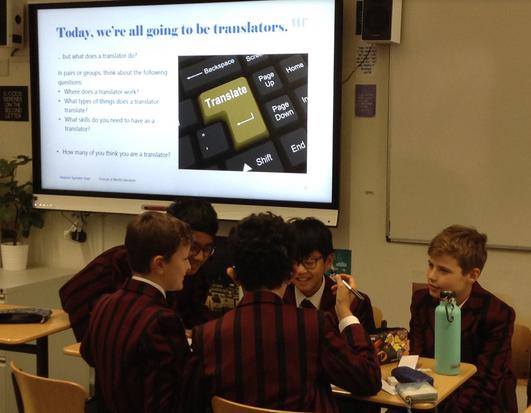 In September all five Entry form groups participated in individual sessions as a form with professional translators who introduced them not only to the beauty of words in English and in other languages, but also to the techniques of good translation, reading for gist and literal translation. Pupils were encouraged to explore expression in French through the composition of art work and a comic strip narrative, with many pupils sharing their knowledge of other languages - Hebrew, Italian and Greek to name just a few.